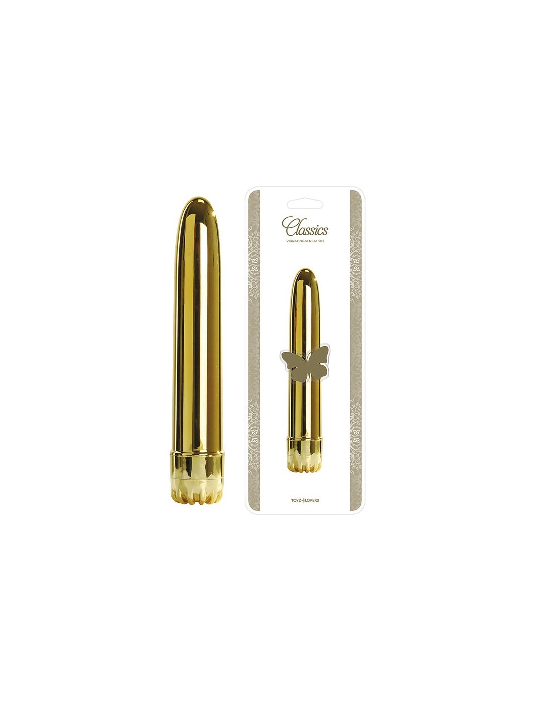 Wibrator Klasyczny Vibe Złoty Large od Toyz4lovers to narzędzie, które spełni Twoje najskrytsze fantazje. Zasilany dwiema bateriami LR14 (nie wliczonymi w zestaw), zapewnia długotrwałe i intensywne wibracje. Jego elegancki design i doskonałe parametry sprawiają, że jest idealnym wyborem dla osób, które pragną eksplorować swoją seksualność i doświadczać niezapomnianych chwil rozkoszy. Nie czekaj dłużej - czas na odkrywanie nowych horyzontów przyjemności!- Miejsce stymulacji