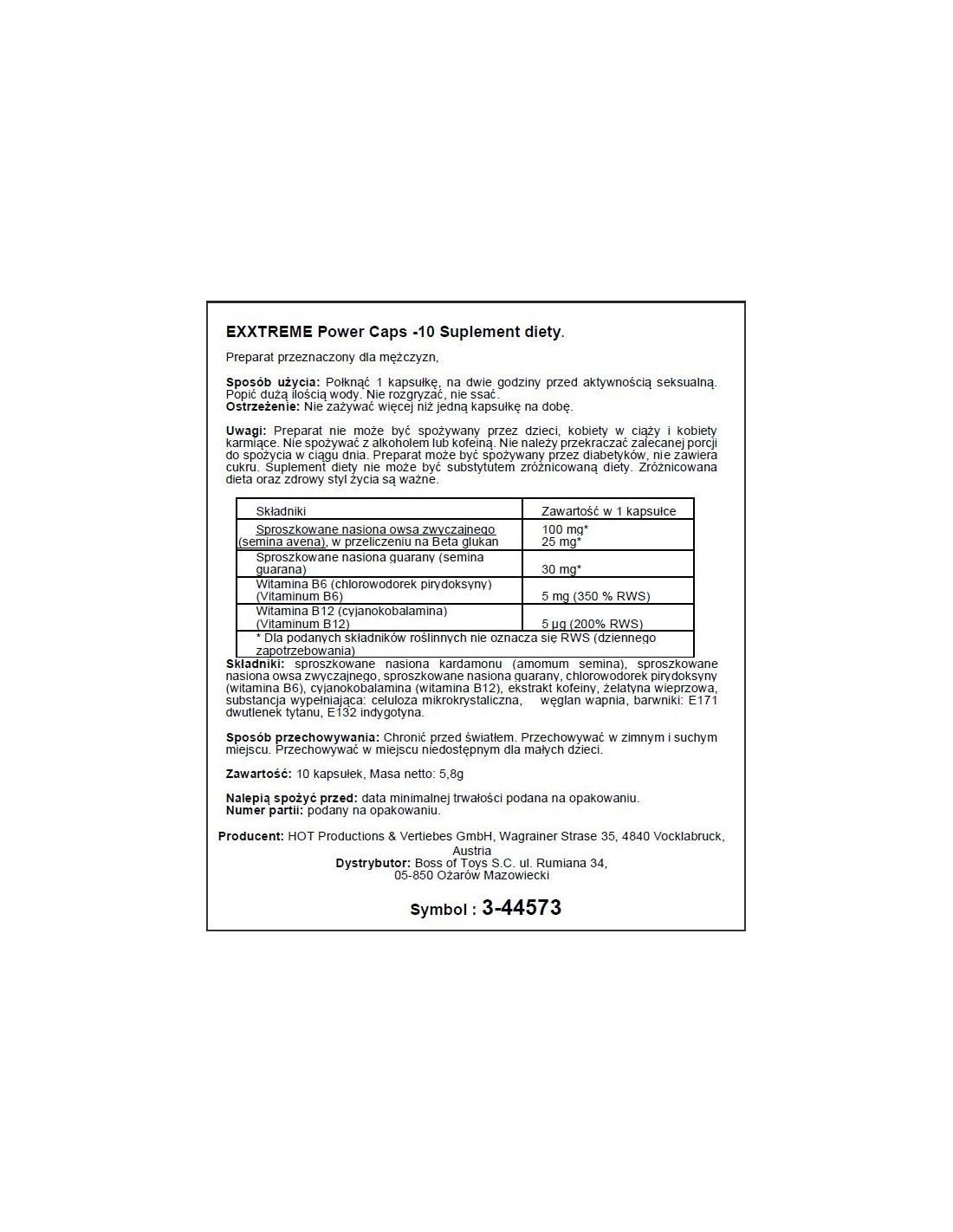 Nasz produkt, stworzony przez renomowaną firmę HOT, opiera się na naturalnych składnikach, które zostały dokładnie przebadane. Dzięki temu możesz mieć pewność, że stosowanie Exxtreme Power Caps 1X10 Stk. jest całkowicie bezpieczne. Nie ryzykuj swojego zdrowia - wybierz produkt, który zapewni Ci pełne bezpieczeństwo i skuteczność!