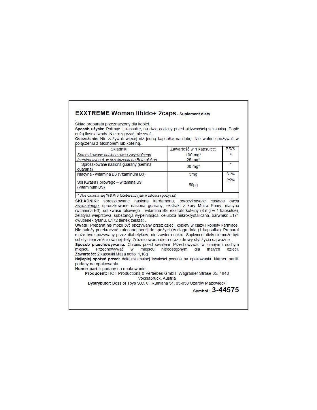Z Exxtreme Libido Caps Woman 2 kaps. Twoje życie seksualne stanie się jeszcze bardziej ekscytujące i spektakularne. Dzięki naturalnym składnikom, które działają na Twoje libido i zmysły, będziesz mogła cieszyć się niezapomnianymi doznaniami w łóżku. Nie czekaj dłużej - spraw sobie ten niezwykły suplement diety i odkryj nowe poziomy namiętności i przyjemności. Zwiększ swoje libido już teraz!