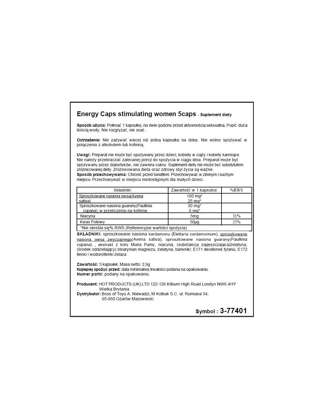 Women Energy 5 kaps. to nie tylko skuteczne narzędzie do zwiększenia libido, ale także bezpieczny suplement diety. Jego naturalne składniki, takie jak ekstrakt z żeń-szenia, maca czy żeń-szeń sibirski, są starannie dobrane, aby wspierać Twój organizm i zapewnić pełny komfort podczas stosunku.