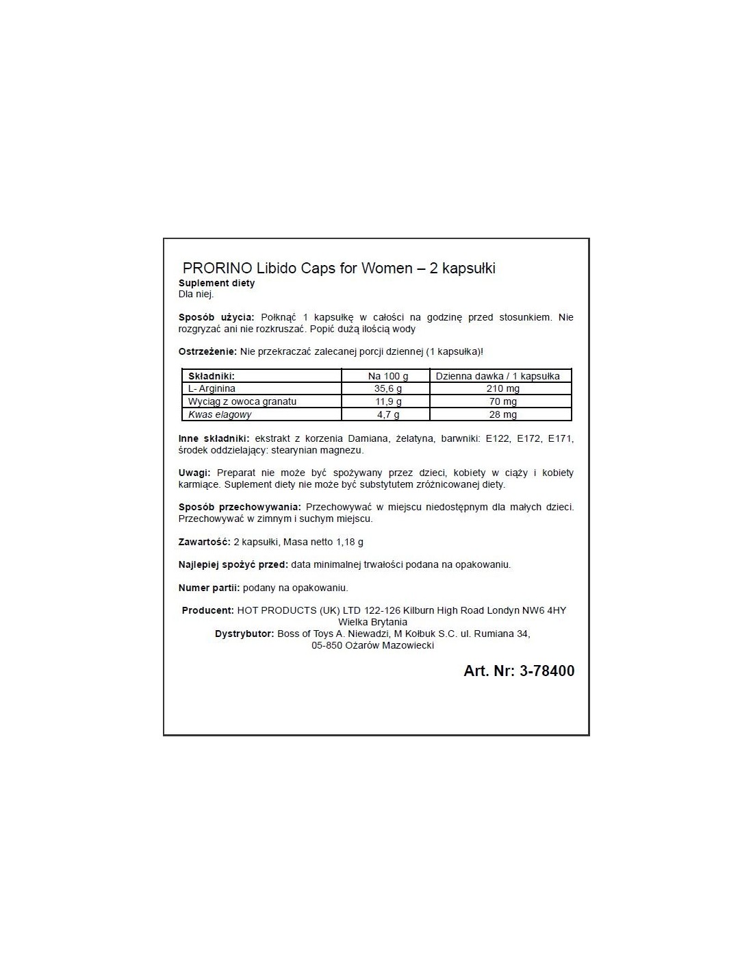 Zapomnij o frustracji i niezaspokojeniu. Prorino Women Black Line to produkt, który zrewolucjonizuje Twoje życie intymne. Dzięki naszym kapsułkom, będziesz mogła czerpać pełnię radości z seksu i wyrażać swoje pragnienia. Nie pozwól, aby stres czy zmienne hormony wpływały na Twoje zadowolenie - sięgnij po Prorino Women Black Line i odkryj nowe możliwości przyjemności.