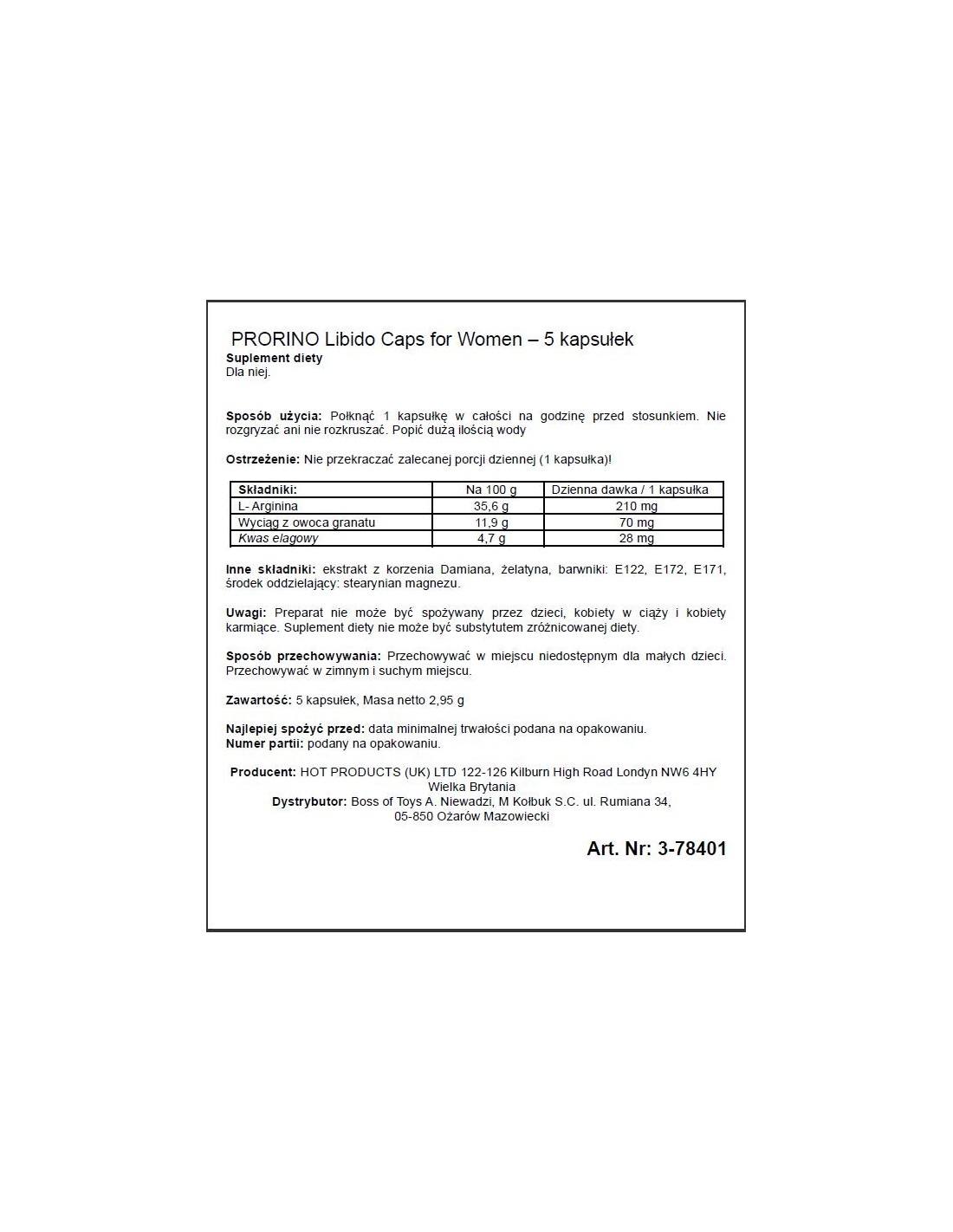 Prorino for Women Black Line to rewolucyjny preparat, który sprawi, że Twoje życie seksualne nabierze zupełnie nowego wymiaru. Dzięki unikalnej recepturze opartej na naturalnych składnikach, będziesz mogła cieszyć się pełnym zadowoleniem ze zbliżeń i odkryć w sobie nową, silną ochotę na seks.