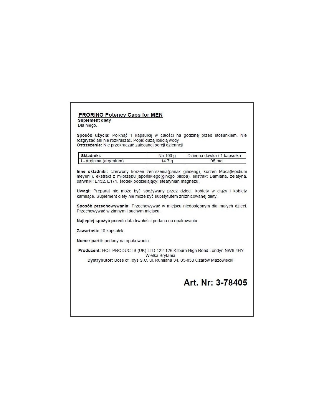 Poprawa życia seksualnego Prorino Men Black Line Potency 10 kaps.