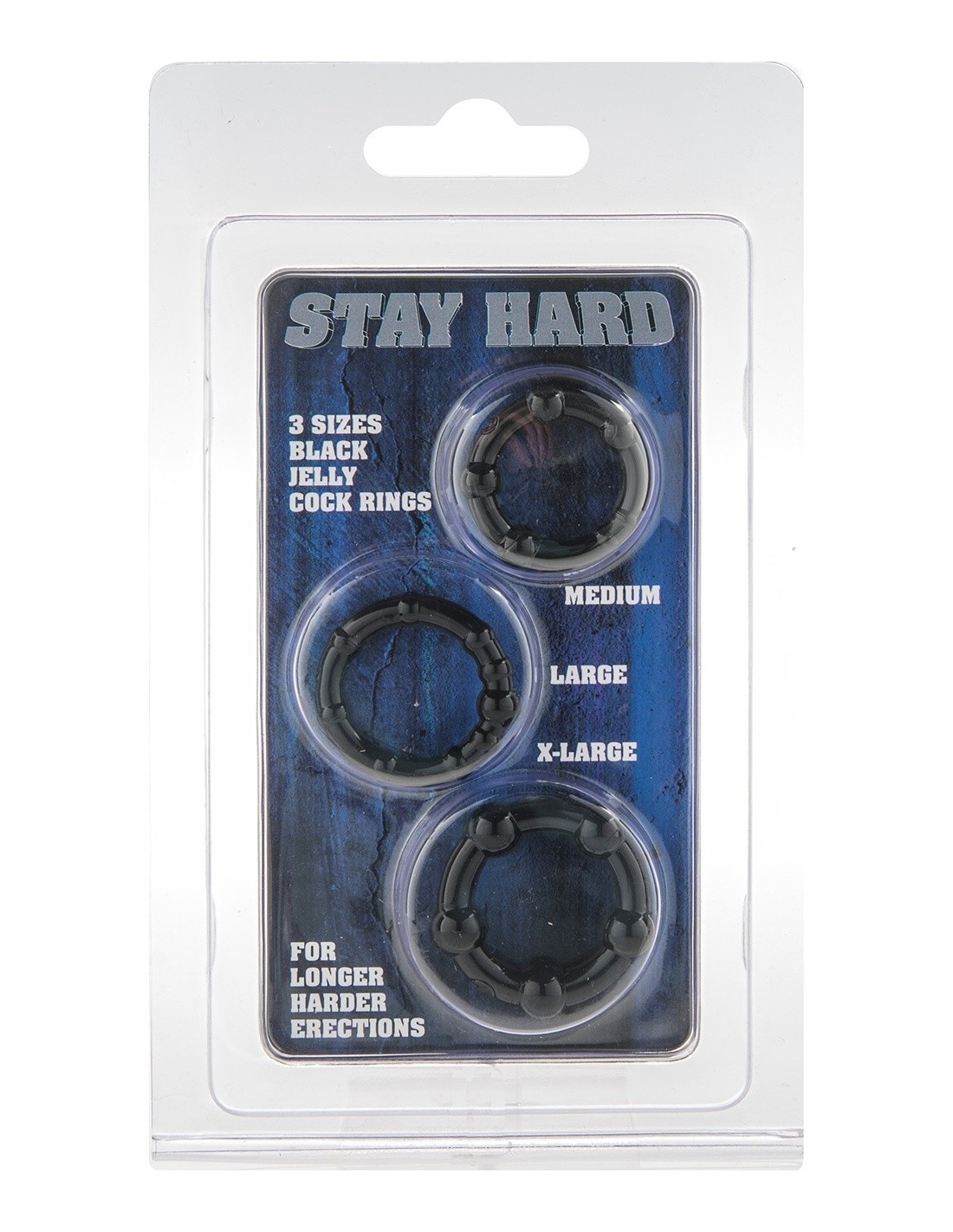 Zestaw pierścieni erekcyjnych Stay Hard Black 3 szt.
