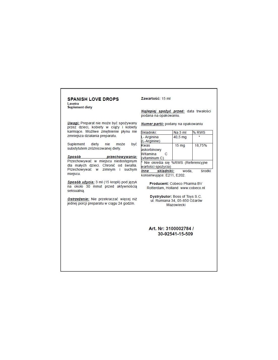 CobecoZapal swoje życie intymne z Hiszpańską Muchą Spanish Love Drops Lavetra 15 ml