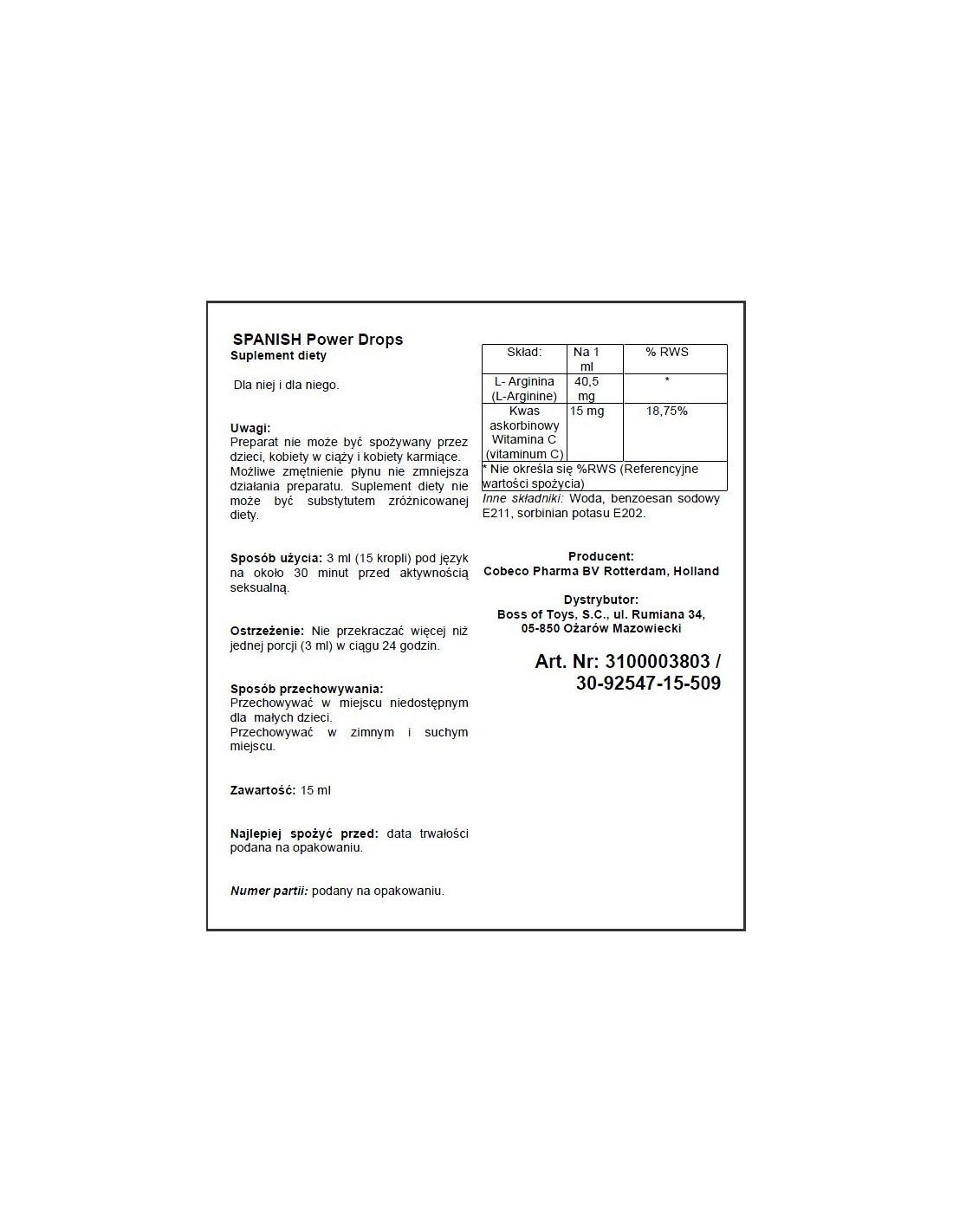Pragniesz ożywić swoje życie intymne i doświadczyć wyjątkowych chwil pełnych namiętności? Hiszpańska mucha Spanish Fly Extra Power 15 ml jest idealnym rozwiązaniem dla Ciebie! Ten rewolucyjny produkt, stworzony przez renomowanego producenta Cobeco, zapewnia niezapomniane doznania i pobudza Twoje zmysły w sposób, na jaki zasługujesz.