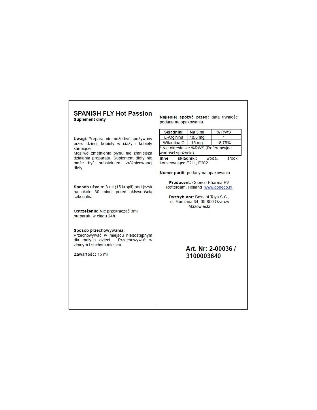 CobecoStymuluj swój popęd seksualny z Hiszpańską Muchą Spanish Fly Hot Passion Eu 15 ml