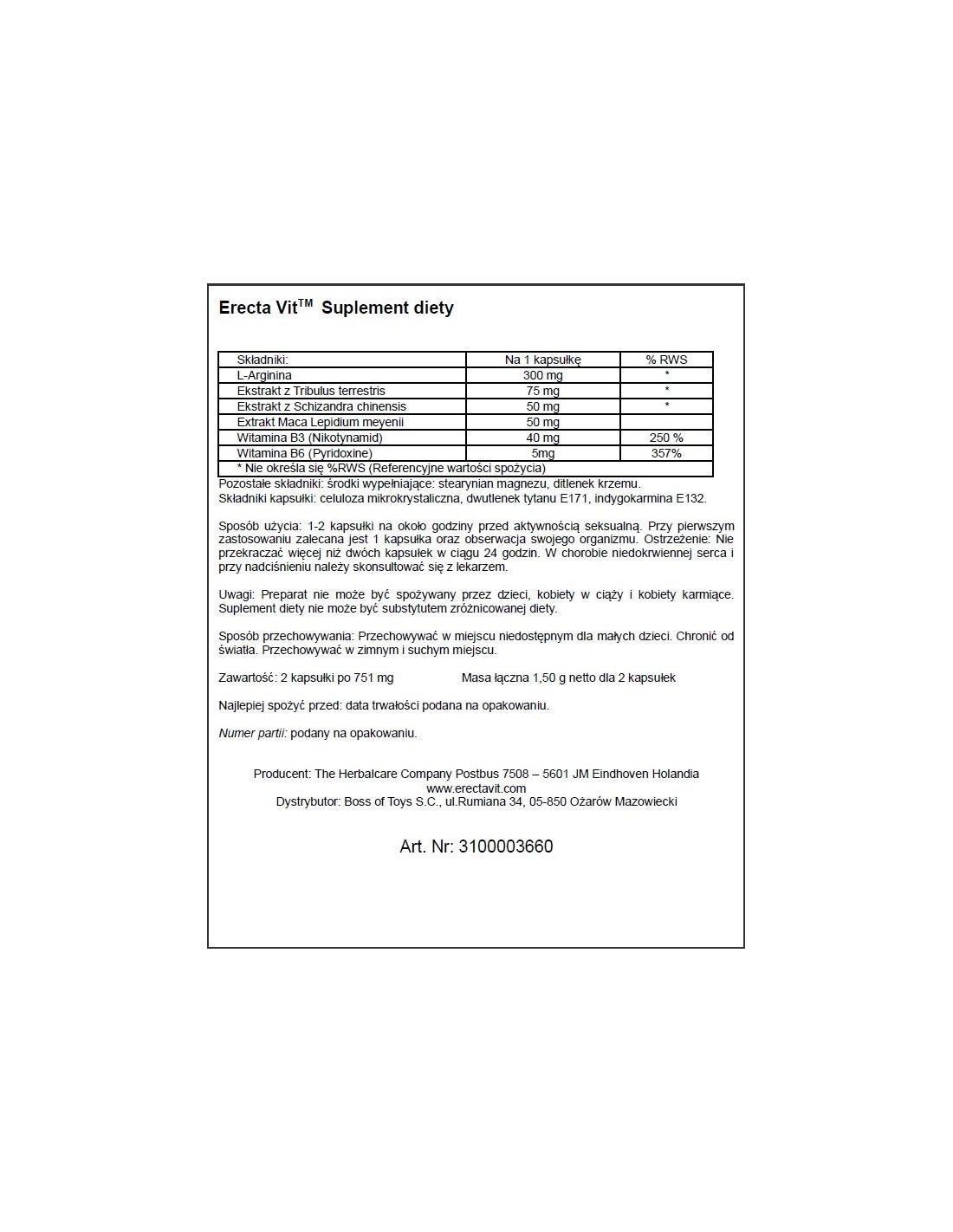 Każde opakowanie Erectavit zawiera 2 kapsułki, które możesz stosować przed stosunkiem. Zalecamy zażycie jednej kapsułki na godzinę przed aktywnością seksualną, a w razie potrzeby możesz zażyć drugą kapsułkę. Dzięki temu masz pełną kontrolę nad swoją erekcją.