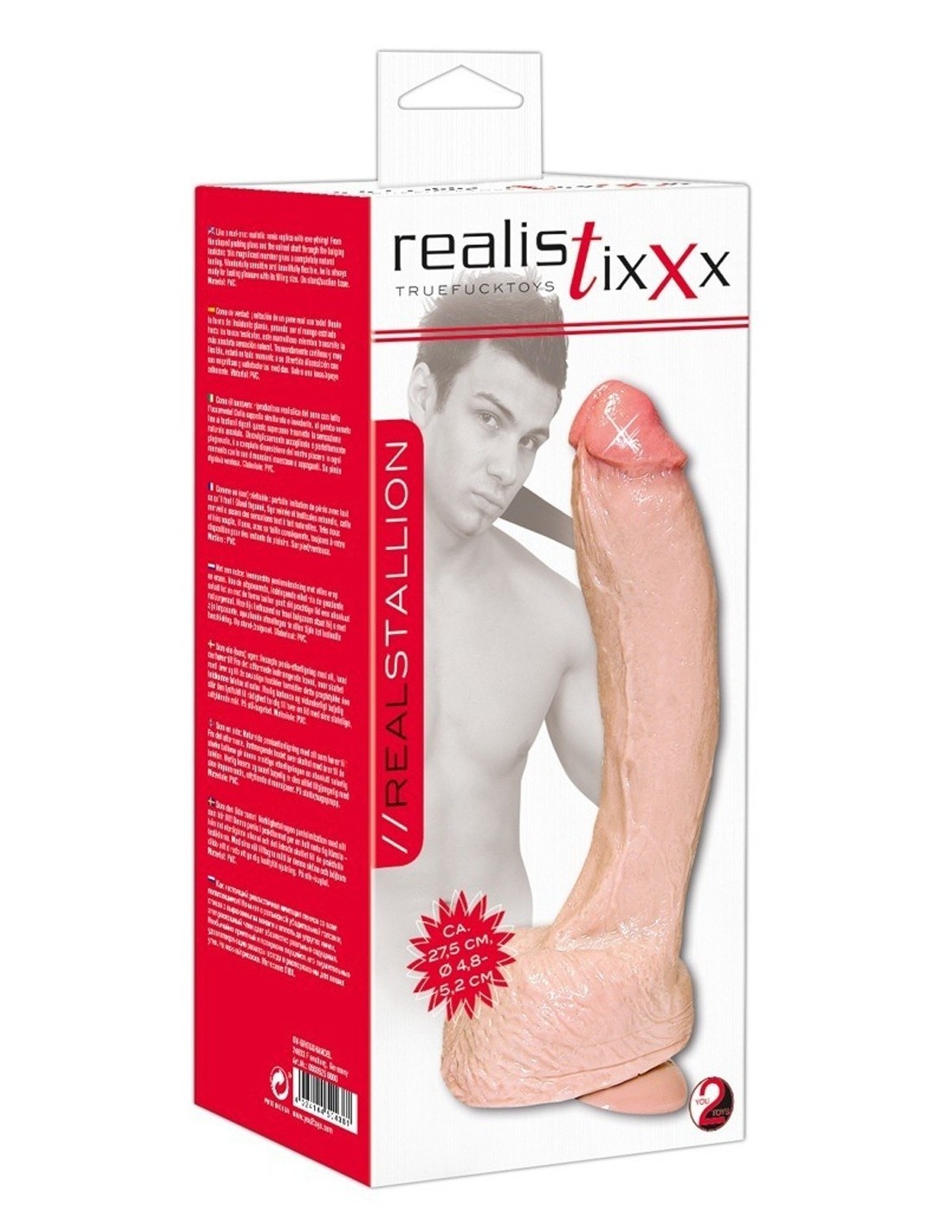 Z całkowitą długością około 27,5 cm i szerokością od 4,8 do 5,2 cm, Dildo Realistyczne Realistixxx Stallion spełni Twoje najbardziej wymagające oczekiwania. Jego imponujące rozmiary zapewnią Ci pełne zaspokojenie i niezapomniane doznania. Nie musisz się już więcej zadowalać mniejszymi wersjami - teraz możesz mieć wszystko, czego pragniesz!