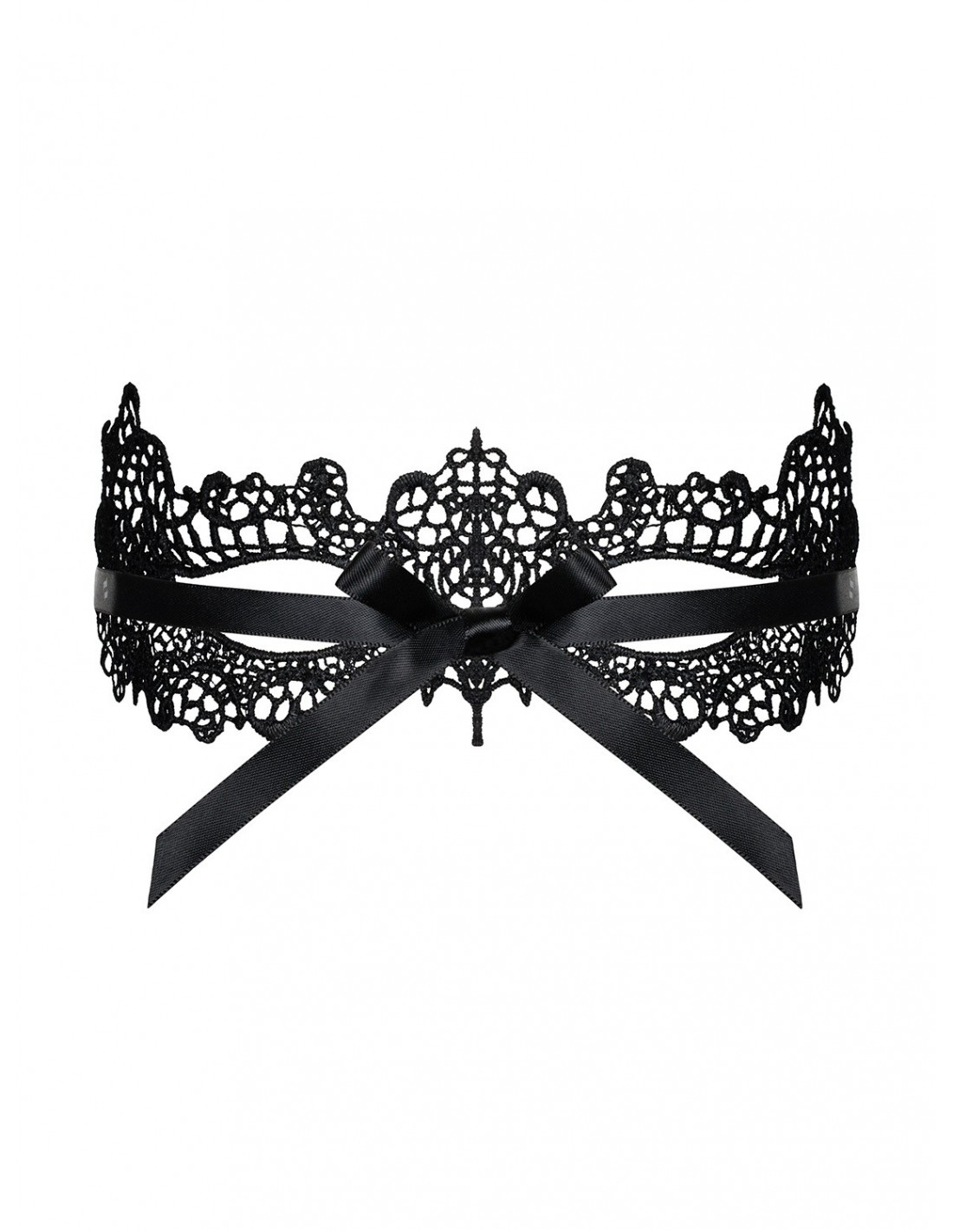 Maska wykonana jest z czarnej gipiury o wyjątkowo intrygującym fasonie. Jej dopasowany do twarzy kształt gwarantuje komfort noszenia, a subtelnie przylegająca, satynowa wstążeczka dodaje jej elegancji. Wykonana z miłego w dotyku materiału (100% poliester), maska zapewni Ci nie tylko niezapomniane wrażenia, ale także wygodę podczas noszenia.