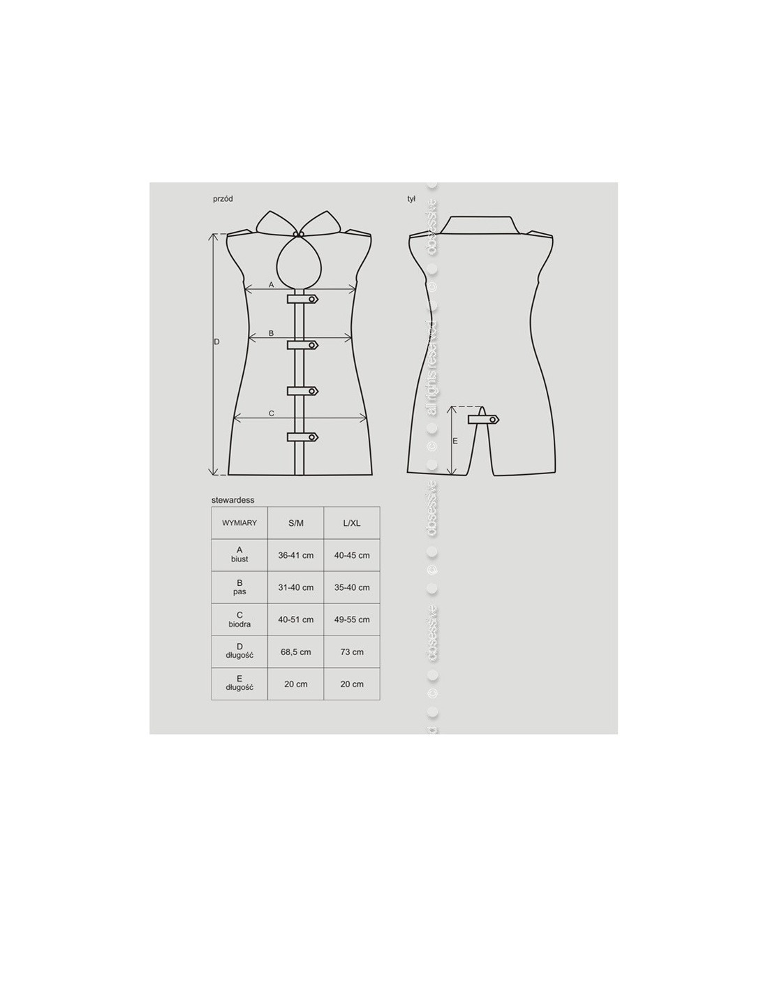 Ten strój to połączenie stójki, przymarszczonych, krótkich rękawków oraz imitacji na patki, które dodają mu unikalnego, mundurkowego charakteru. Czapka zdobi skrzydlaty znaczek "Obsessive service", podkreślając autentyczność tego kostiumu. Dodatkowo, wycięcie z tyłu zalotnie odsłania pośladki, sprawiając, że będziesz wyglądać niezwykle kusząco.
