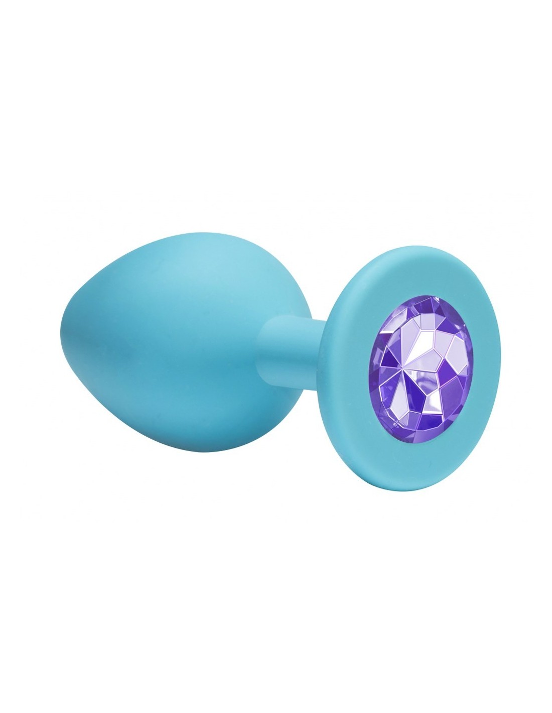 Mały Turkusowy Korek Analny z Pięknym Diamentem Rhinestone - Korki analne silikonowe - 6