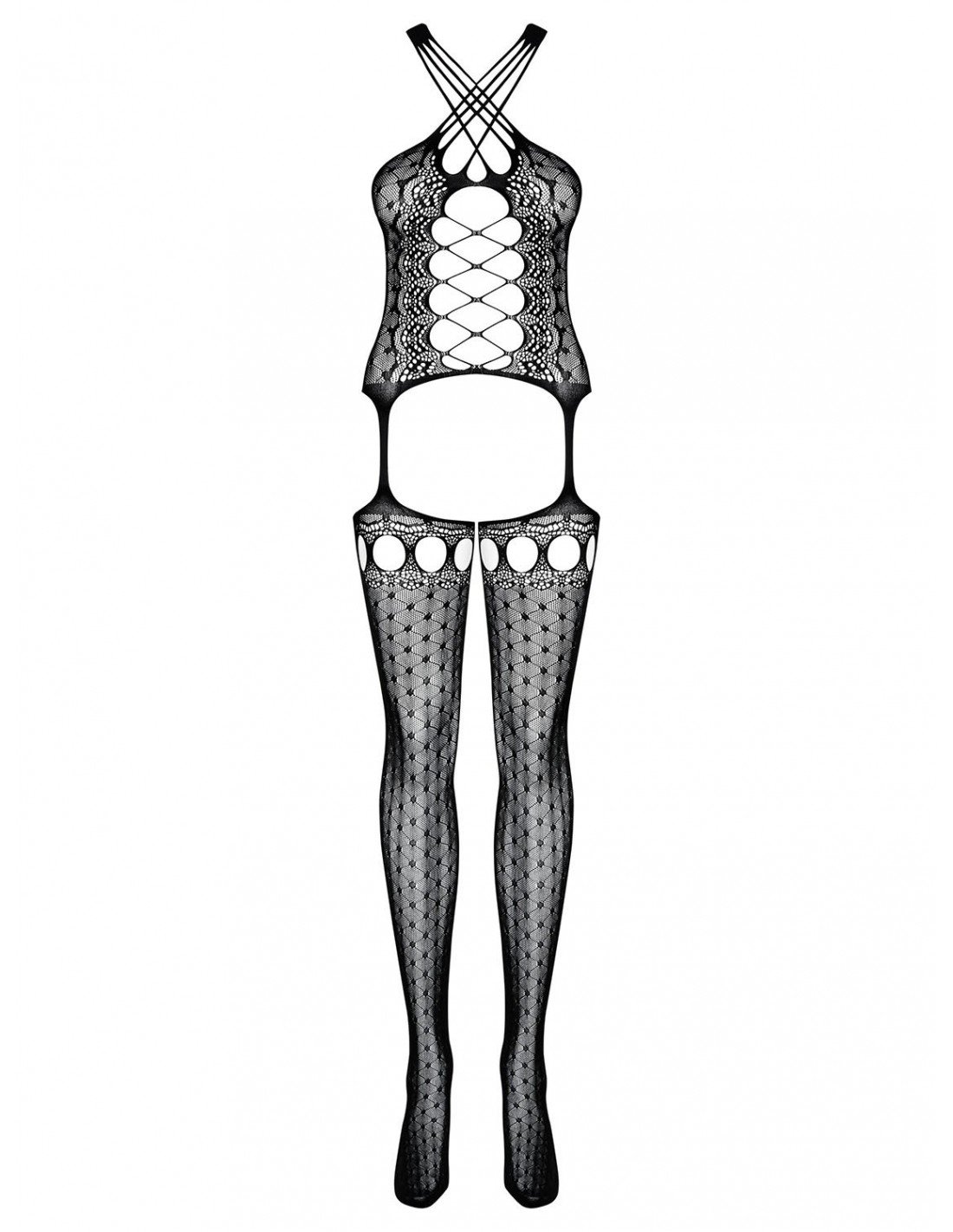 To bodystocking to prawdziwe dzieło sztuki. Jego bogato zdobione wzory geometryczne dodają mu niepowtarzalnego uroku. Połączenie topu z pończochami kusi i odsłania Twoje zjawiskowe pośladki. Dekolt ozdobiony skrzyżowanymi paseczkami podkreśla Twoje piersi, dodając im jeszcze więcej seksapilu. Pionowe wycięcia na brzuszku optycznie wyszczuplają Twoją talię, a wycięcia na udach są dodatkową ozdobą, która przyciąga uwagę.