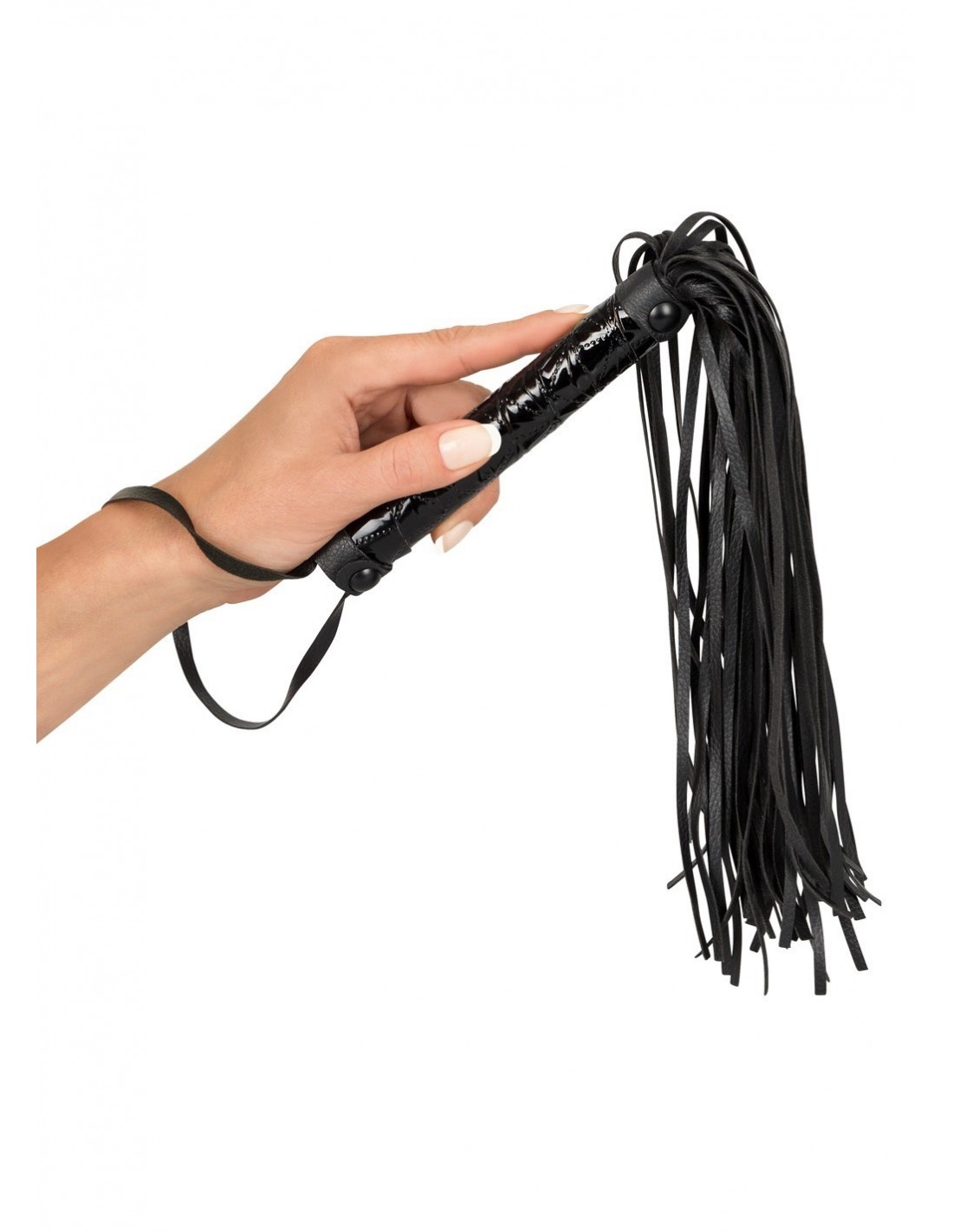 Ten czarny pejcz został starannie wykonany z wysokiej jakości materiałów, aby zapewnić nie tylko wyjątkowy wygląd, ale także wygodę podczas użytkowania. Jego wytłoczony uchwyt daje pewny chwyt i kontrolę, pozwalając Ci precyzyjnie dozować siłę uderzeń. Dodatkowo, pętla na nadgarstek zapewnia stabilność i wygodę podczas korzystania z pejcza.