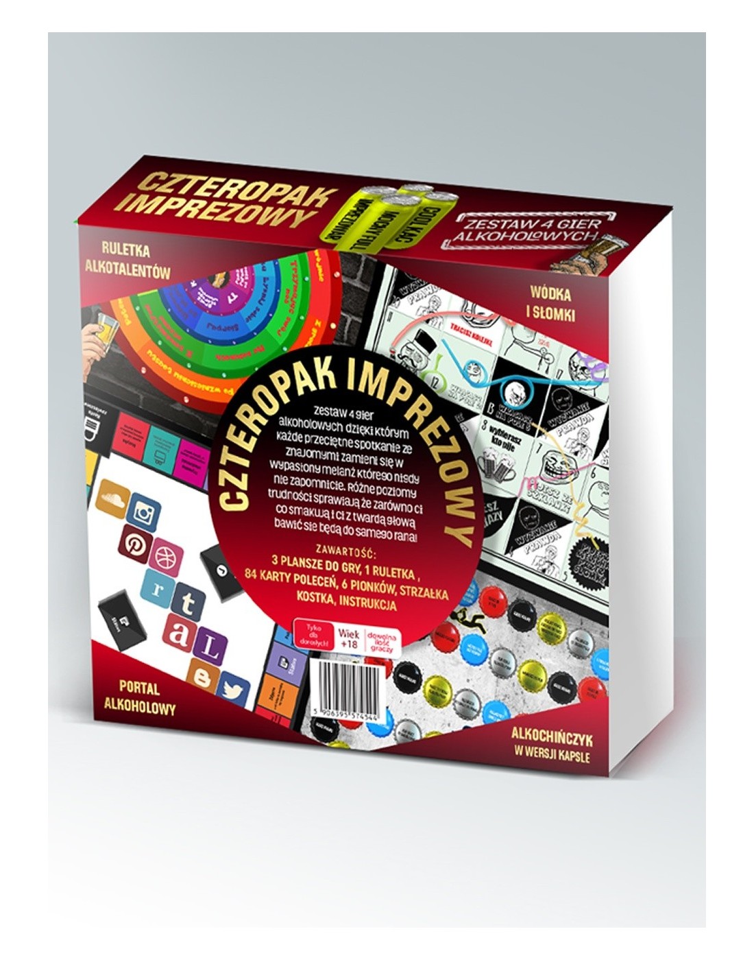 Wybierz 4-pak Imprezowy i podbij atmosferę każdej imprezy. To nie tylko zestaw gier, to gwarancja niezapomnianych chwil pełnych śmiechu i emocji. Nie trać czasu na nudne wieczory - z tym zestawem każda impreza stanie się wyjątkowa. Zamów teraz i rozkręć towarzystwo!