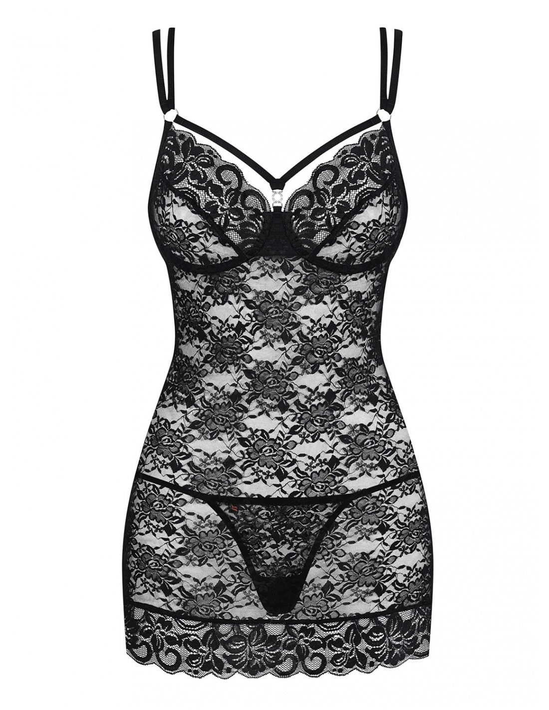 Bielizna Nocna 860-Che-1 Koszulka I Stringi Czarna S/M