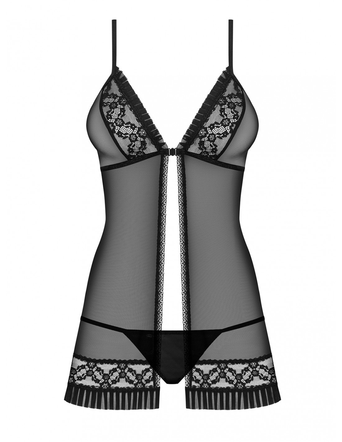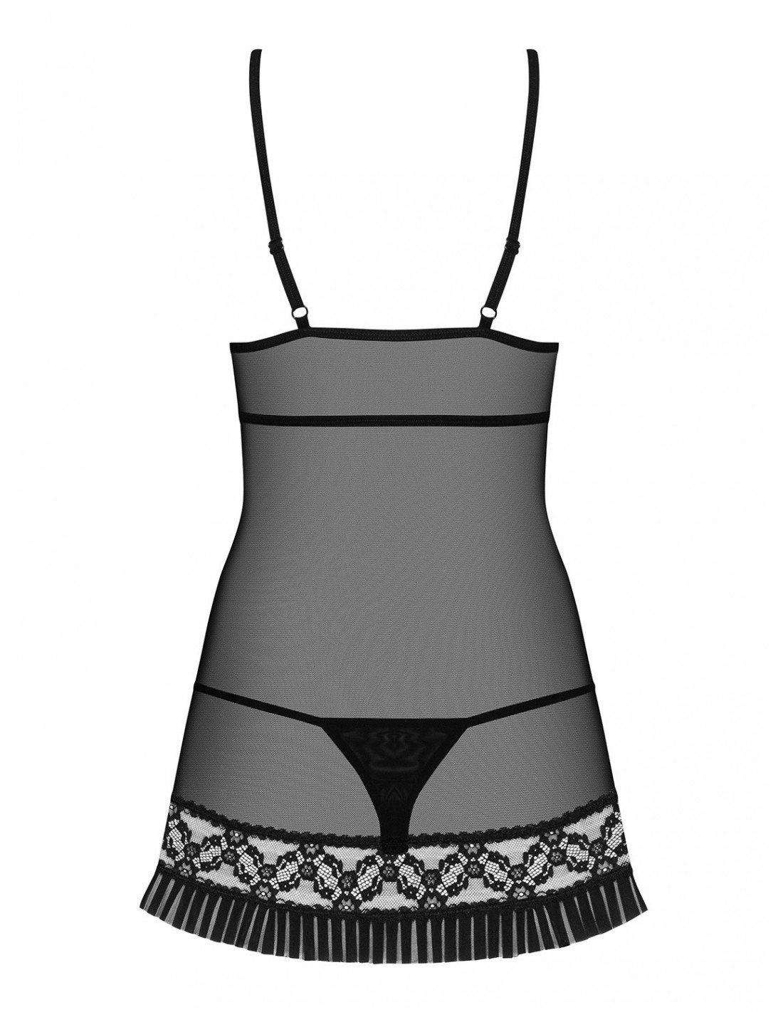 Nasza babydoll erotyczna zachwyci Cię swoimi szczegółami. Delikatnie prześwitujące, miękkie miseczki podkreślą kształt Twojego biustu, dodając mu kuszącego wyglądu. Regulowane ramiączka zapewnią idealne dopasowanie, a zapięcie między piersiami umożliwi szybkie i łatwe rozpięcie, co dodatkowo podkręci atmosferę.