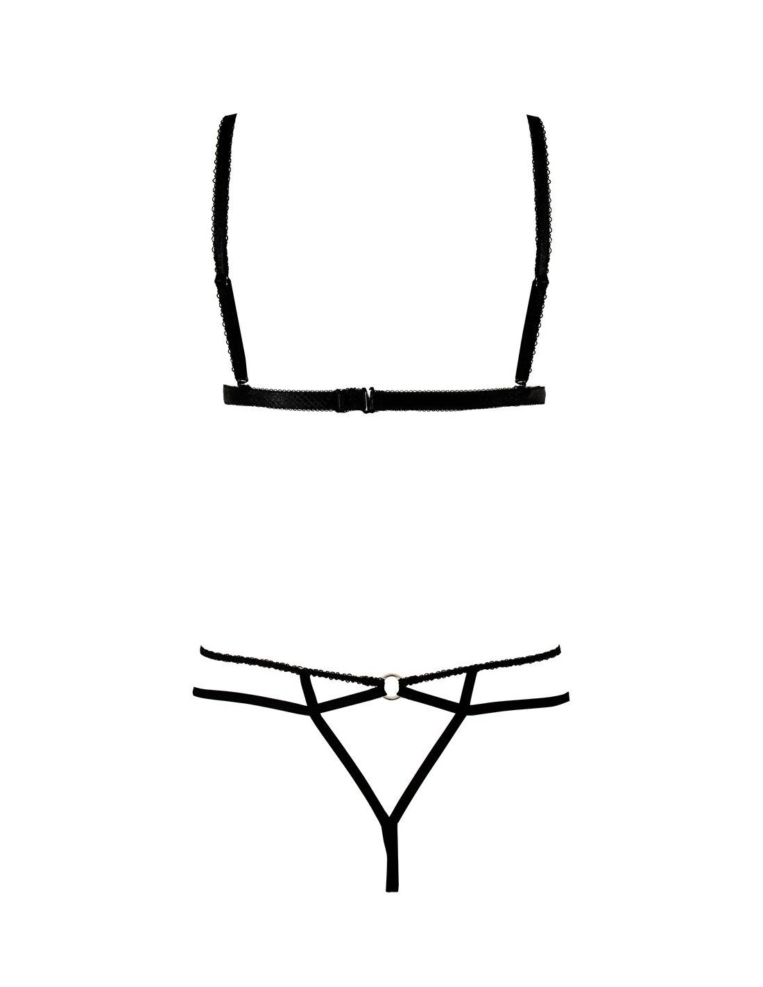 Ten komplet bielizny erotycznej został stworzony z myślą o kobietach, które cenią sobie elegancję i wyrafinowanie. Miękkie miseczki ozdobione paskami na dekolcie dodają całości niepowtarzalnego uroku. Regulowane ramiączka i szerokość pod biustem gwarantują idealne dopasowanie do Twojej sylwetki, podkreślając jej atuty.