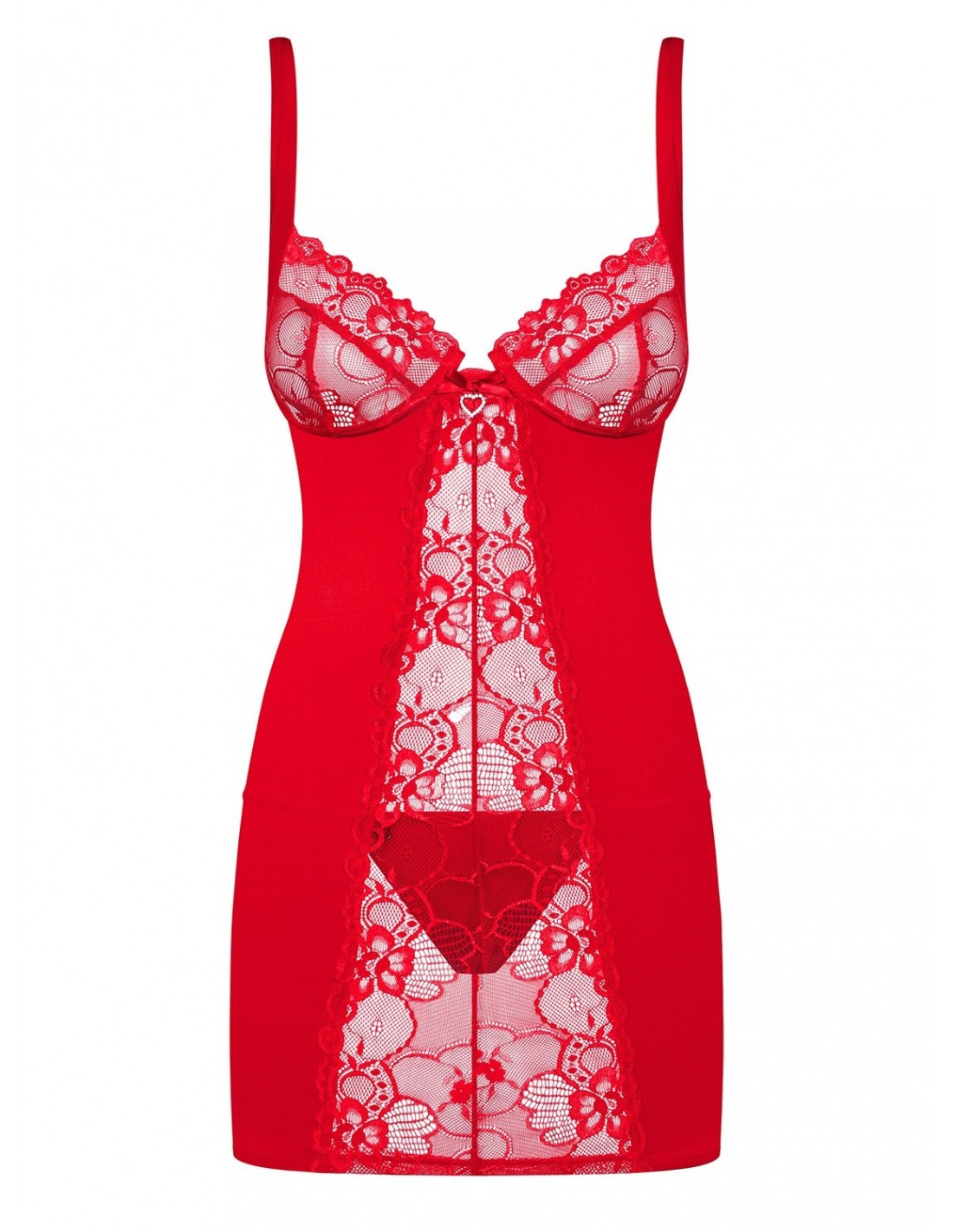 Pozwól sobie na chwile relaksu i zapomnij o codziennych troskach. Bielizna nocna Heartina to perfekcyjne połączenie uroku i wygody. Gładka tkanina delikatnie otula Twoje ciało, podkreślając jego piękno. Koronka z kwiatowymi zdobieniami dodaje całości romantycznego charakteru, a intensywna czerwień rozpala Twoje fantazje. Zawieszka z połyskującym detalem idealnie wieńczy ten niezwykły design.
