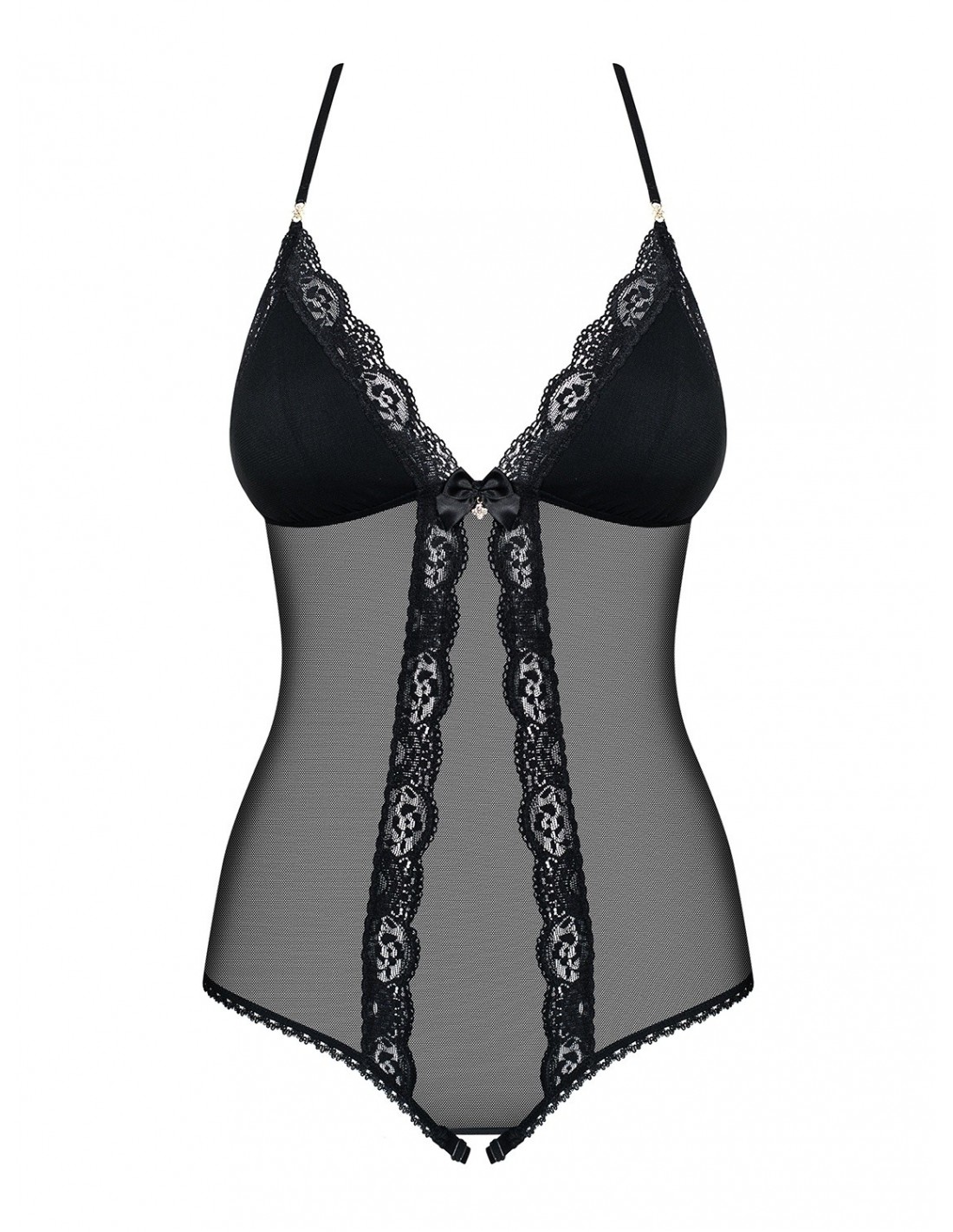 Nasze body erotyczne zostało wykonane z prześwitującej siateczki, która subtelnie podkreśla Twoje kształty, oraz zdobiącej ciało koronki, dodając mu niezwykłego uroku. Regulowane szelki krzyżujące się na plecach zapewniają idealne dopasowanie i seksowny wygląd, który zachwyci Twojego partnera.