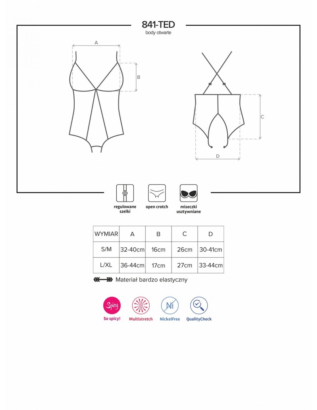 Zapraszamy do odkrycia naszego najnowszego produktu - bielizny erotycznej 841-TED-1 body S/M. Ten niezwykle kuszący i pikantny strój został stworzony specjalnie dla par, które pragną odrobinę więcej przyjemności i ekscytacji w sypialni.