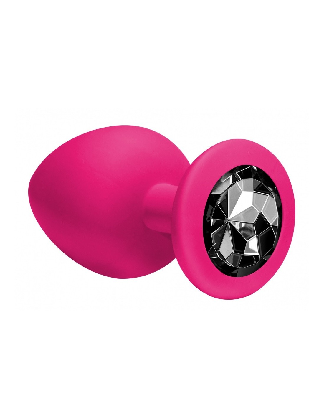 Duży Różowy Korek Analny z Pięknym Diamentem Rhinestone - Korki analne silikonowe - 4