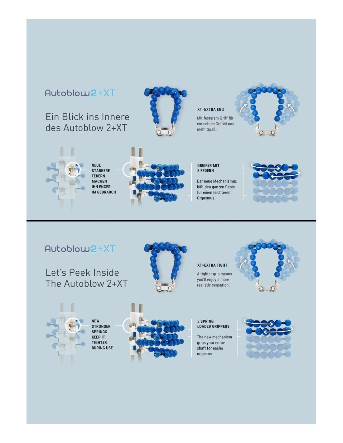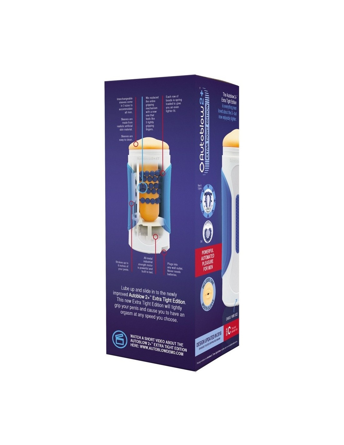 Masturbator Z Wibracją Autoblow 2+Xt C oferuje pełną automatyzację, co oznacza, że masaż odbywa się w ruchu w górę i w dół. Nie musisz się martwić o nic innego, po prostu skup się na swoich przyjemnościach. Wytrzymała obudowa z silnikiem rytmicznie porusza sprężyny, które znajdują się wokół rękawa. Tuleja z otworem w kształcie ust jest odpowiednia dla WSZYSTKICH długości penisa, co sprawia, że ten produkt jest idealny dla każdego mężczyzny.