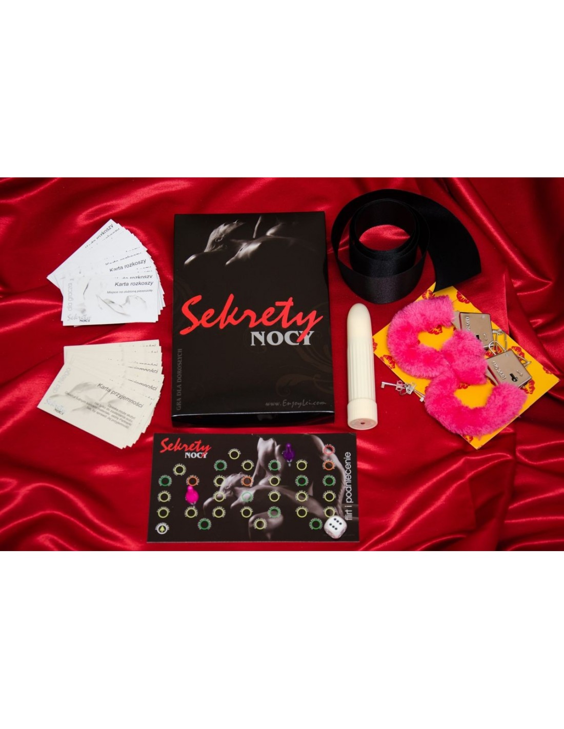 Przygotuj się na pełną namiętności podróż z dwustronną planszą SEKRETY NOCY. Pierwsza plansza, "Flirt i podniecenie", stworzy zmysłową i intymną atmosferę, która rozluźni Was i pozwoli odkryć nowe zmysły. Druga plansza, "Ekstaza i spełnienie", zapewni Wam maksymalne podniecenie i rozgrzeje Was do czerwoności. Zagrajcie w tę grę i pozwólcie, by Wasze fantazje stały się rzeczywistością.