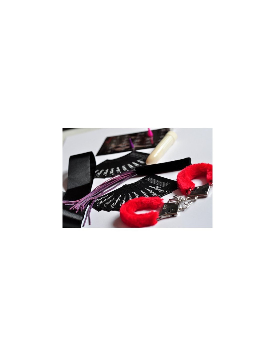 W skład zestawu "Mistrz" wchodzi wiele fascynujących przedmiotów. Skórzany, zmysłowy pejczyk pozwoli Ci karać nieposłuszeństwo, a kajdanki z kolorowym futerkiem zapewnią słodką niewolę. Do masażu i penetracji możesz użyć wibratora, który posiada wygiętą końcówkę do stymulacji punktu G. Dodatkowo, opaska na oczy doda dreszczyku emocji.