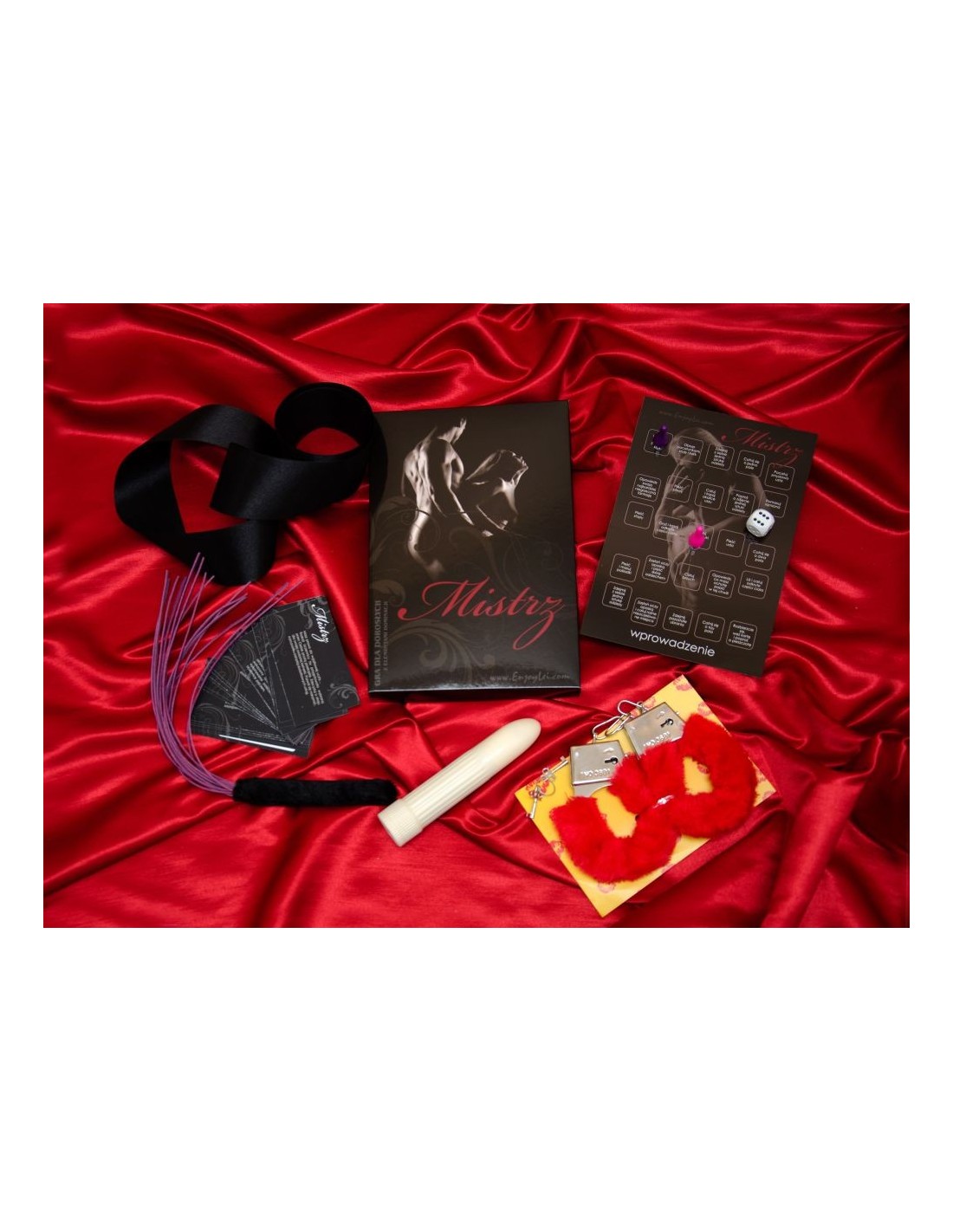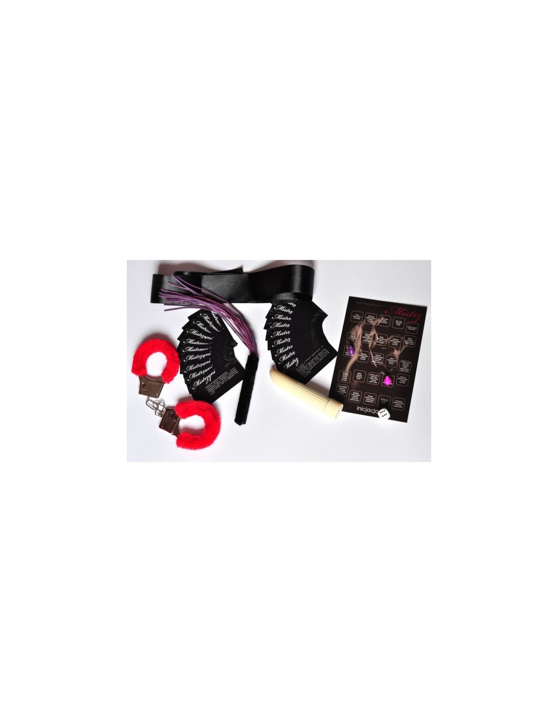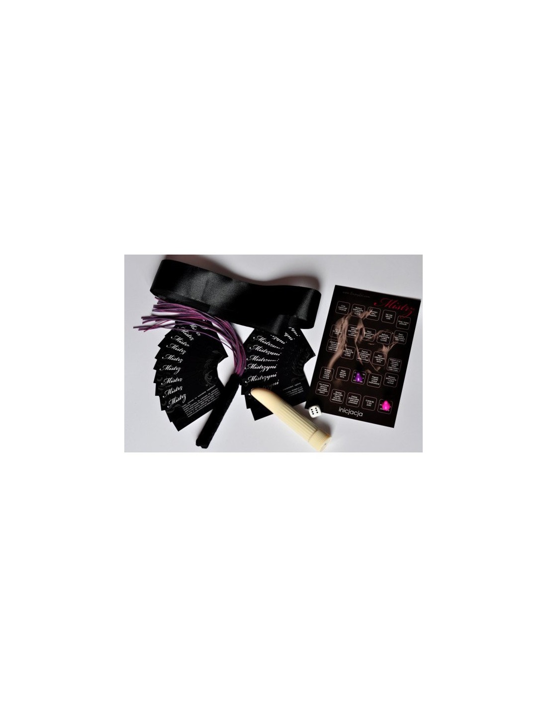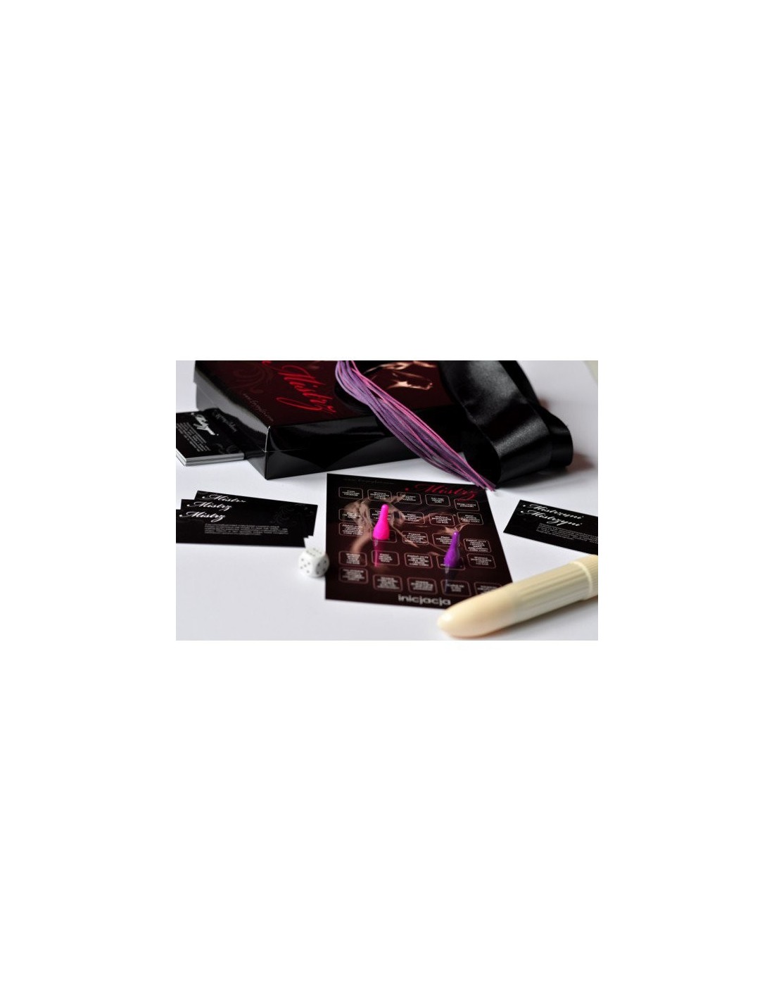 Dwustronna kolorowa plansza Wprowadzenia i Inicjacji oraz 25 kart Mistrza i Mistrzyni zapewnią Wam niezapomniane chwile. Wraz z partnerem możecie rywalizować, przesuwać się po planszy, rzucać kostką i realizować wyzwania z kart. Instrukcja, która dołączona jest do zestawu, poprowadzi Was ścieżką Mistrza.