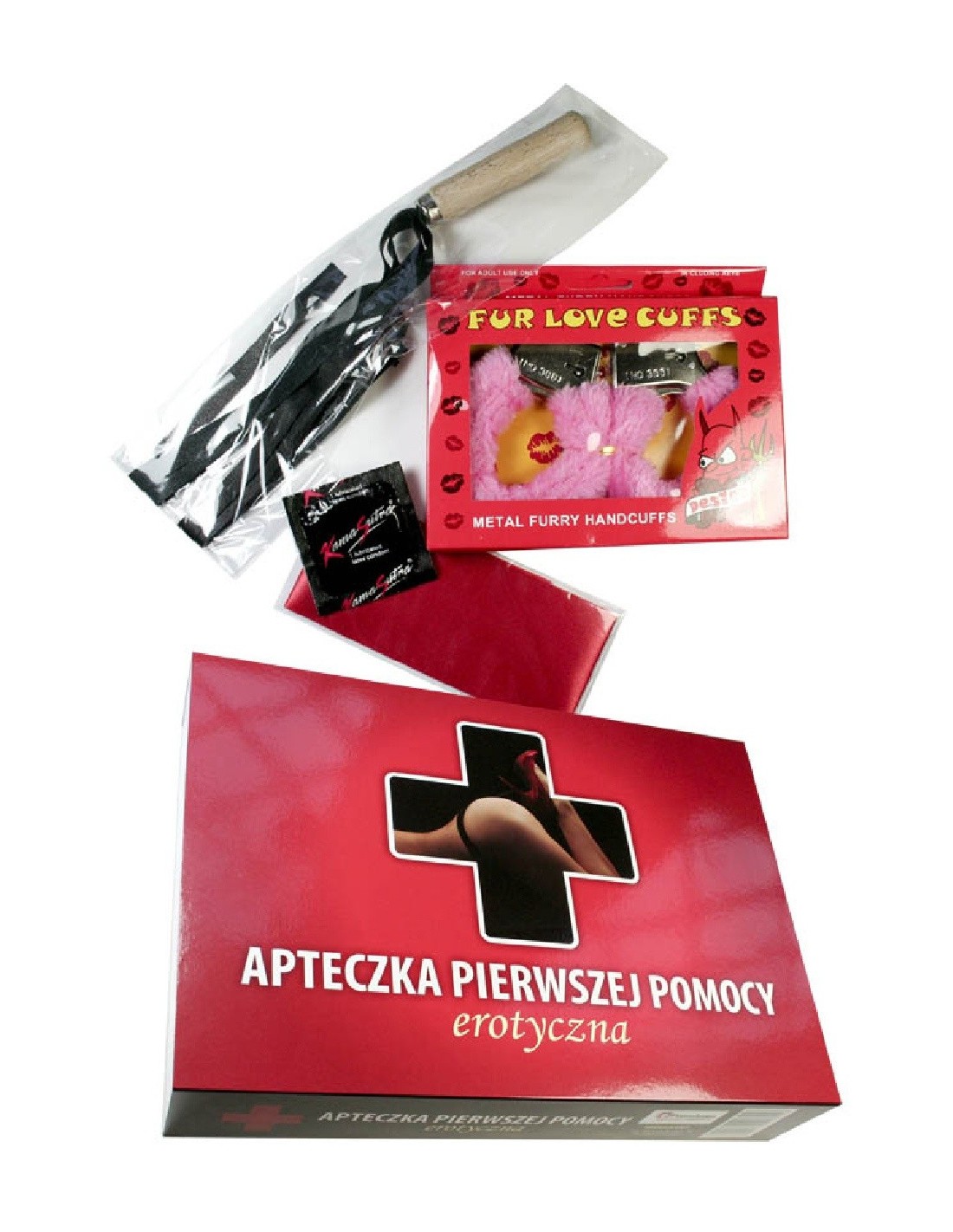 W skład tej nieszablonowej apteczki wchodzą unikalne akcesoria, które zapewnią Wam niezapomniane chwile pełne napięcia i przyjemności. Kajdanki z futerkiem dodadzą odrobinę szaleństwa, prezerwatywa zapewni bezpieczeństwo i komfort, a bicz pozwoli Ci wprowadzić porządek i podkręcić atmosferę. Dodatkowo, opaska na oczy sprawi, że każde dotknięcie będzie jeszcze bardziej intensywne.
