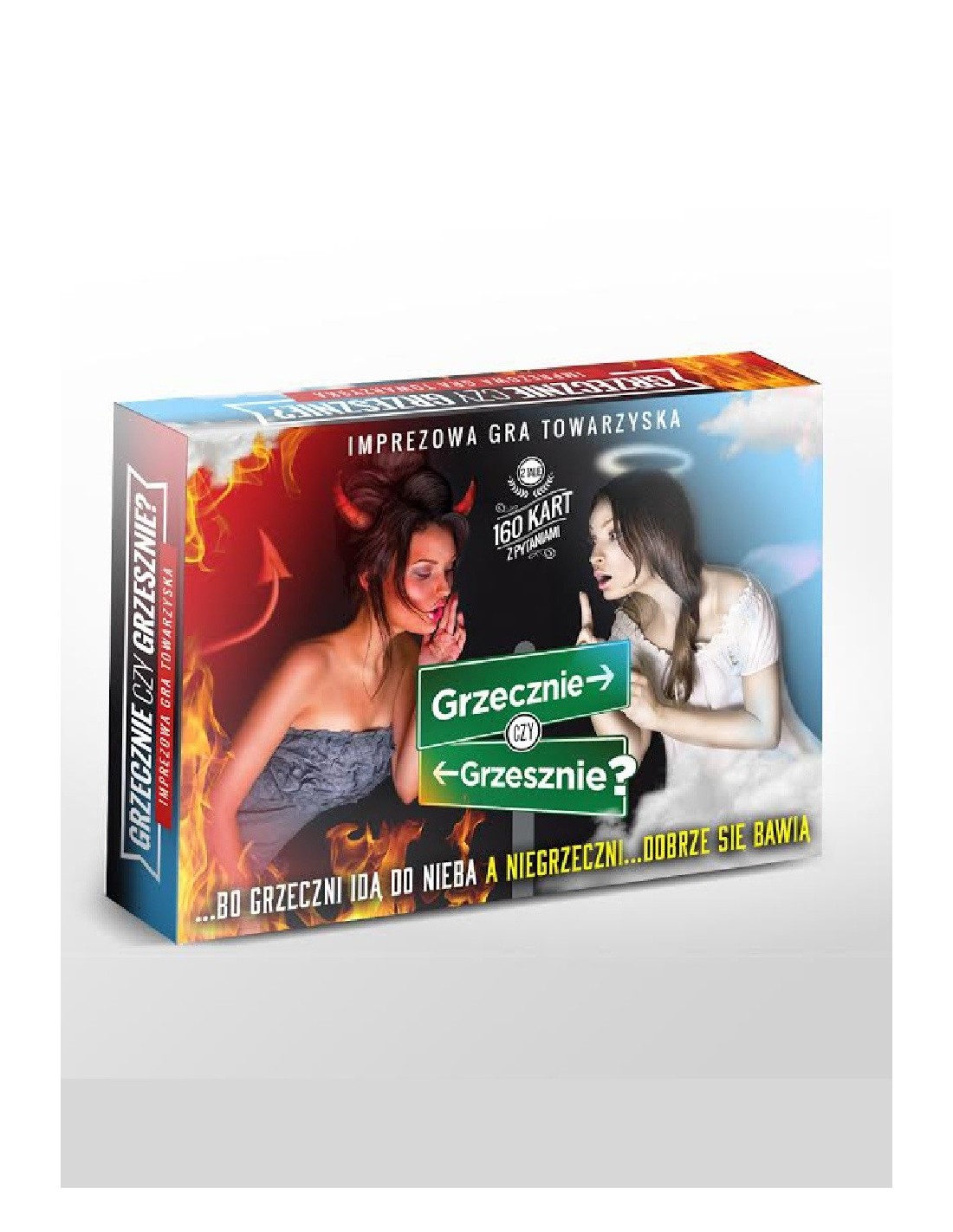 GRZECZNIE CZY GRZESZNIE to gra, która sprawi, że poznasz swoich przyjaciół od zupełnie innej strony. Czy jesteś gotowy na emocjonującą podróż przez zakazane tematy i niegrzeczne pytania? Ta imprezowa gra towarzyska odkryje Twoje najskrytsze fantazje, pragnienia i sekrety. Przełam granice i baw się wspaniale w towarzystwie bliskich osób, podczas których możesz być sobą bez żadnych zahamowań!