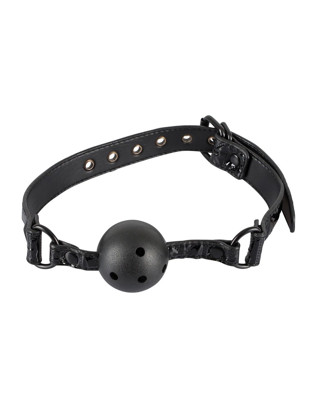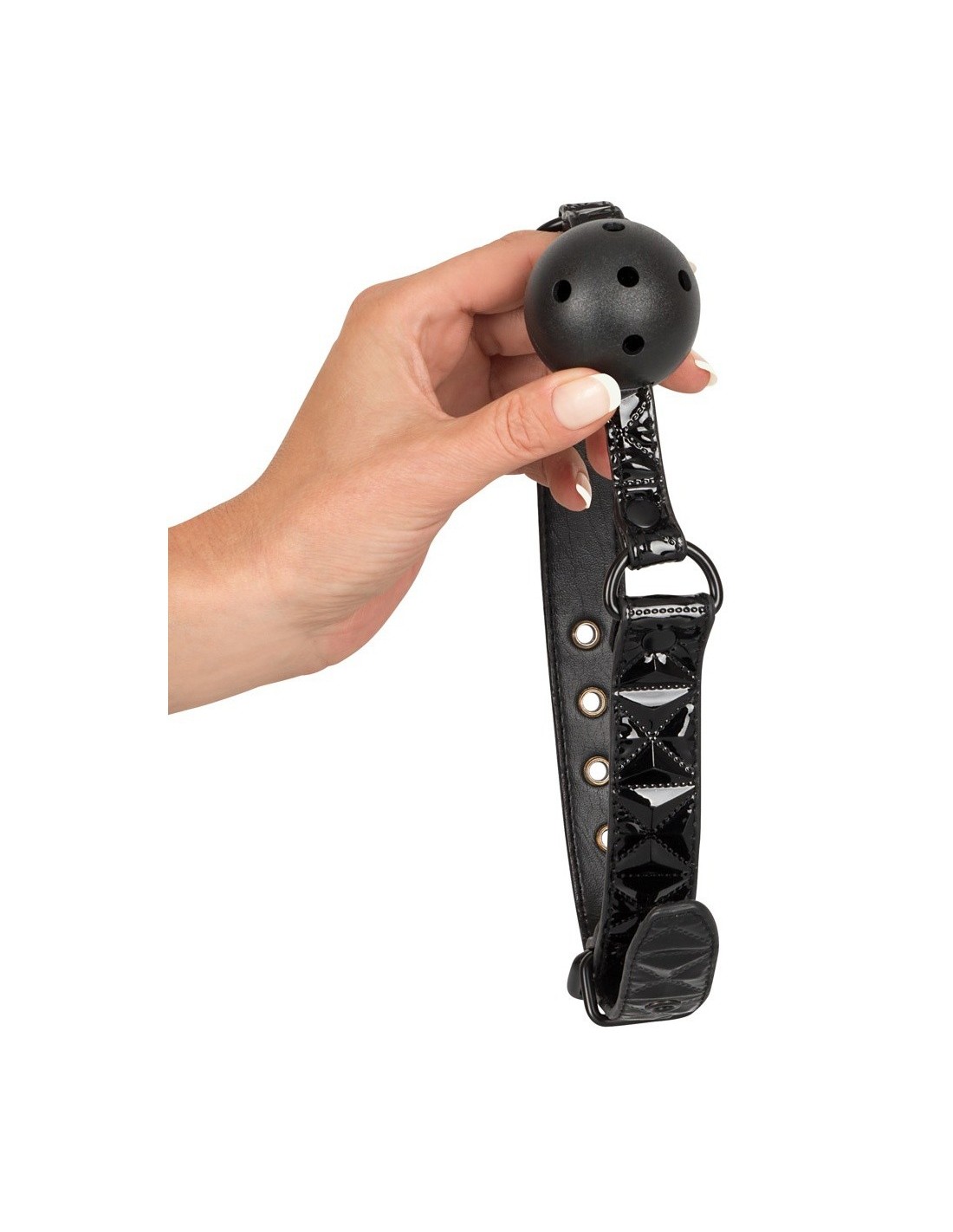 Nasz knebel został zaprojektowany z myślą o maksymalnym komforcie i estetyce. Wykonany z wysokiej jakości poliuretanu, metalu i ABS, jest nie tylko trwały, ale także bezpieczny dla skóry. Czarny kolor nadaje mu elegancji i tajemniczości, idealnie pasując do różnych stylizacji. Dzięki paskom z diamentowym wzorem oraz regulowanemu obwodowi (40-57 cm), knebel doskonale dopasowuje się do Twoich potrzeb i preferencji.