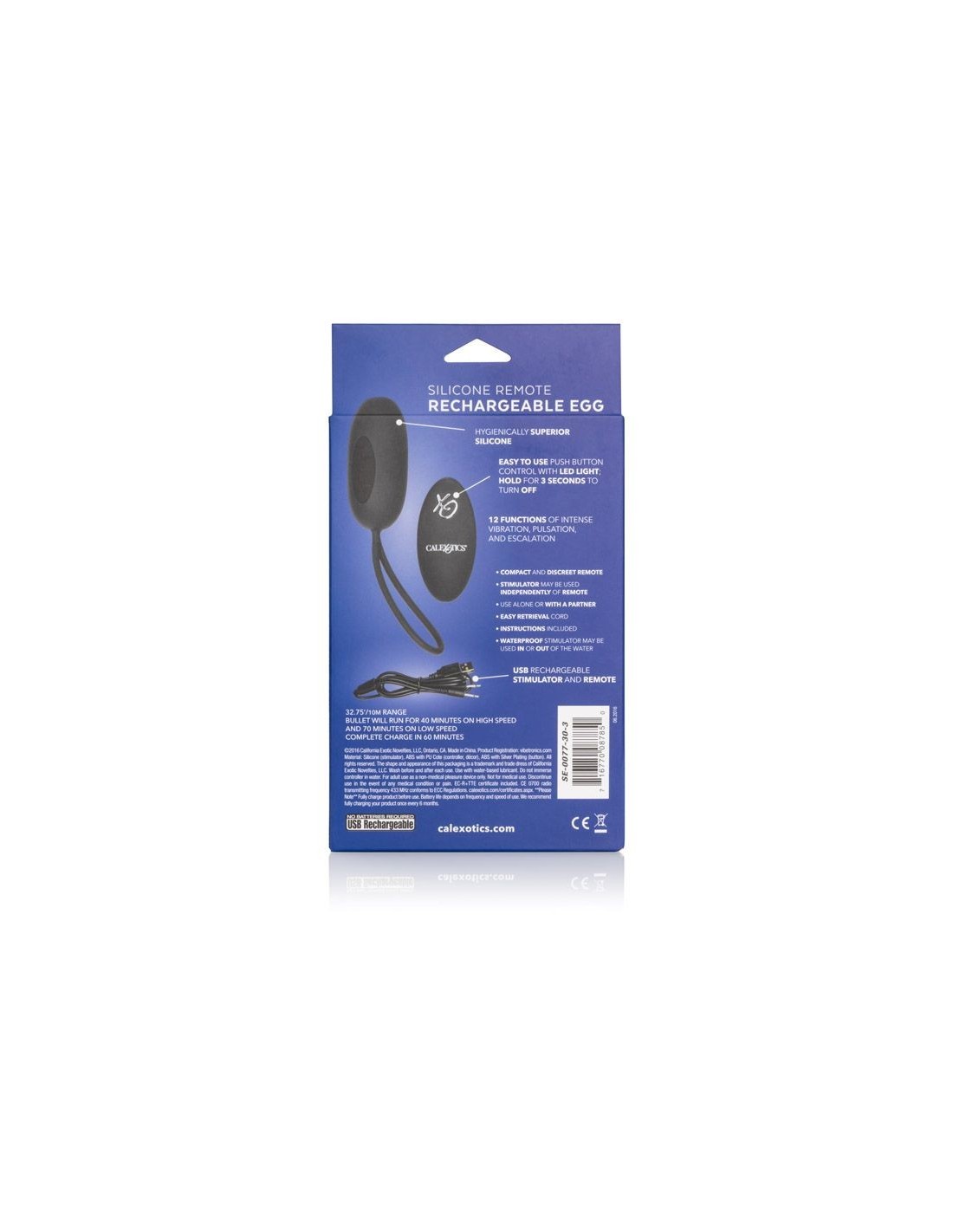 Dzięki bezprzewodowemu pilotowi o dużym zasięgu działania, możesz cieszyć się pełną swobodą i kontrolą nad wibracjami. Niezależnie od pilota, jajeczko działa przez 40 minut na dużej prędkości i 70 minut na małej prędkości, zapewniając Ci długotrwałą przyjemność. Aby zapewnić Ci jeszcze więcej satysfakcji, jajeczko można całkowicie naładować w ciągu zaledwie 60 minut, dzięki czemu zawsze będziesz gotowy na kolejną niezapomnianą przygodę.