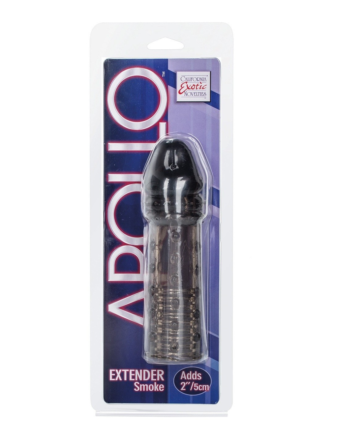 Dzięki przedłużce Apollo Extender Smoke zyskasz nie tylko 2 cale / 5 cm długości, ale także odczujesz przyjemność płynącą z prążkowanej struktury zarówno wewnątrz, jak i na zewnątrz. To nie tylko estetyczny dodatek, ale również dyskretnie zwiększa zarówno długość, jak i obwód Twojego penisa.