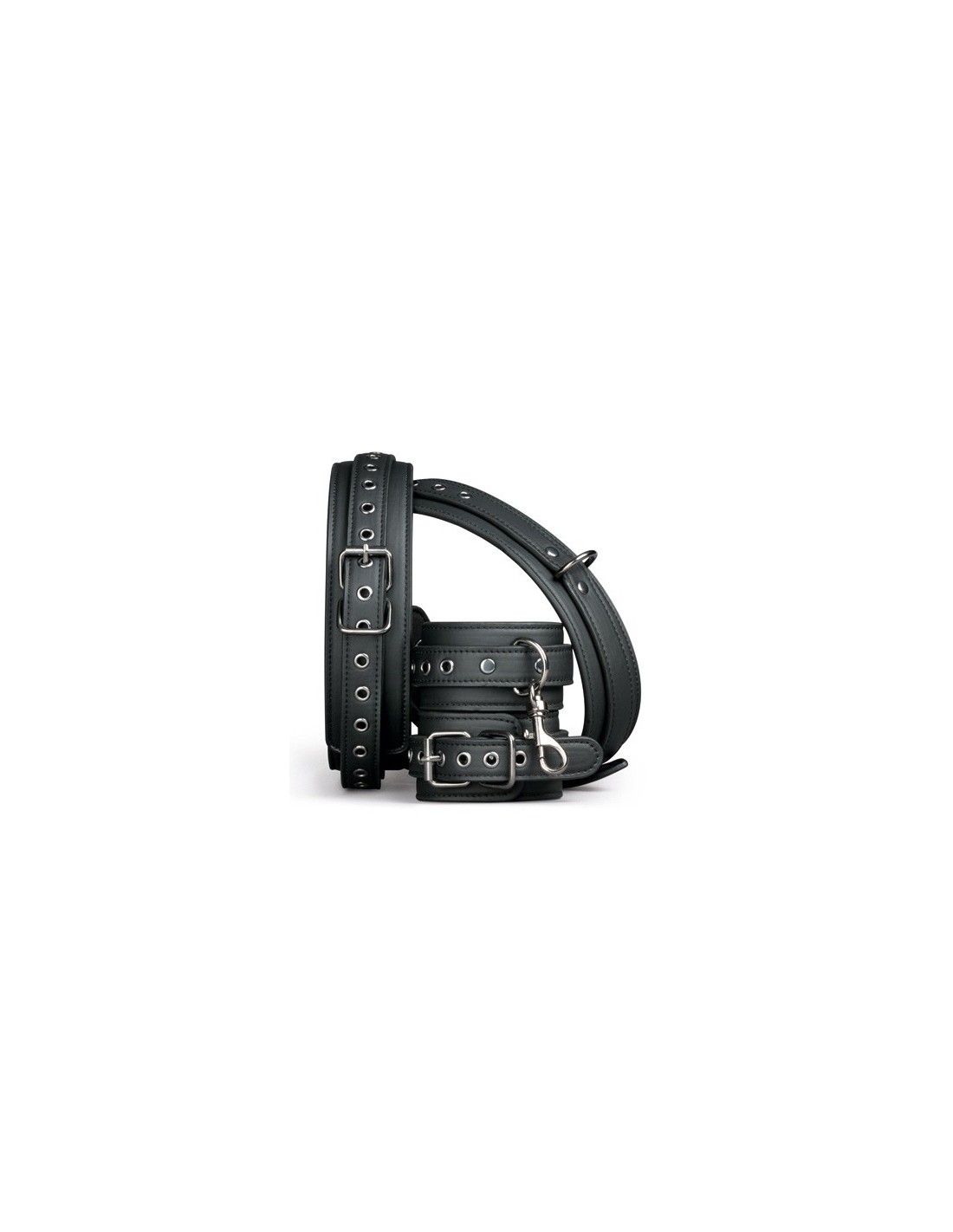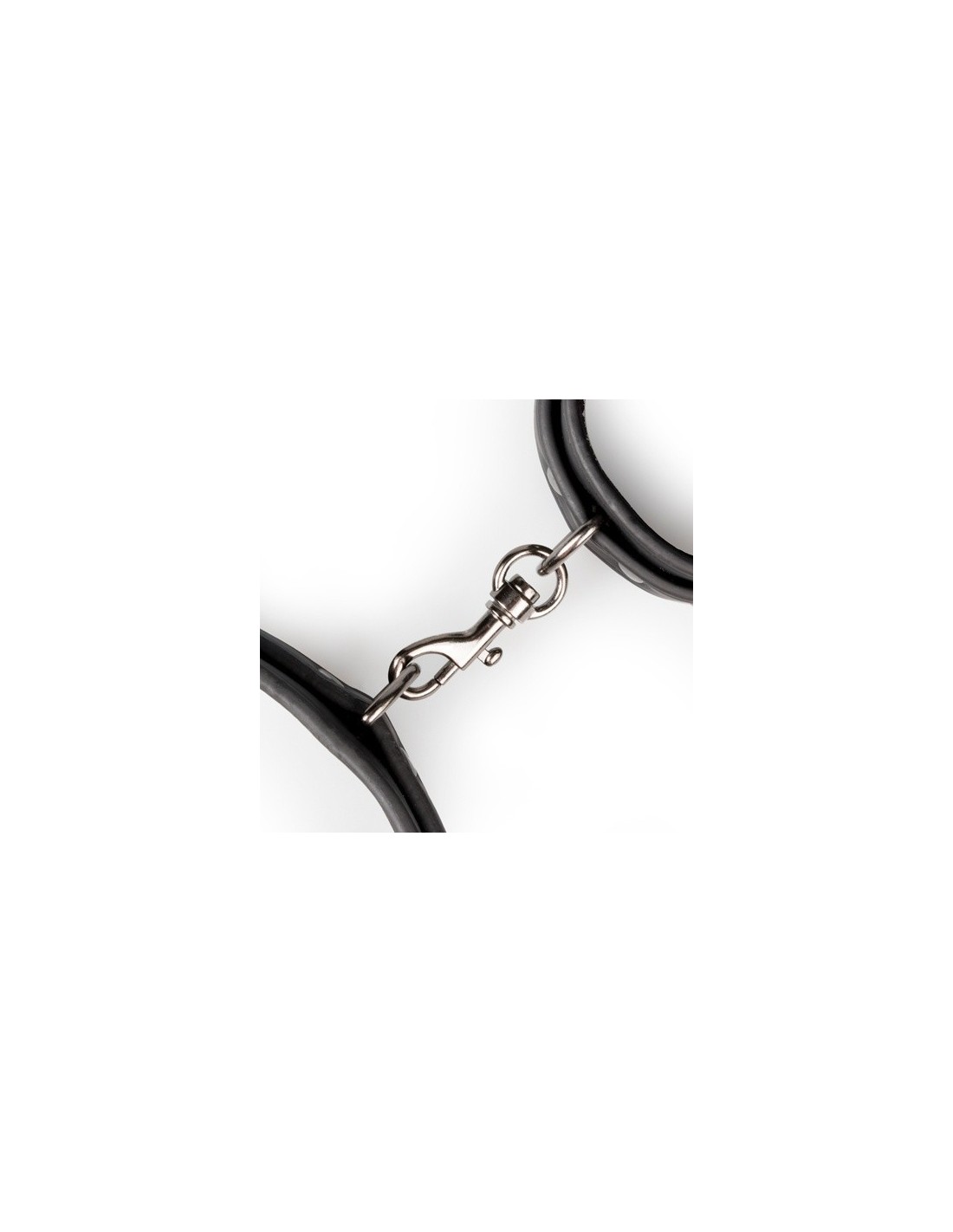 Zapewnij sobie niezapomniane doświadczenia BDSM dzięki temu specjalnemu zestawowi mankietów. Wykonane z mocnej i wytrzymałej skóry ekologicznej, te kajdanki są idealne do eksploracji Twoich fantazji. Dzięki nim możesz połączyć ręce swojego partnera z jego udami, co daje Ci pełną kontrolę nad przyjemnością.