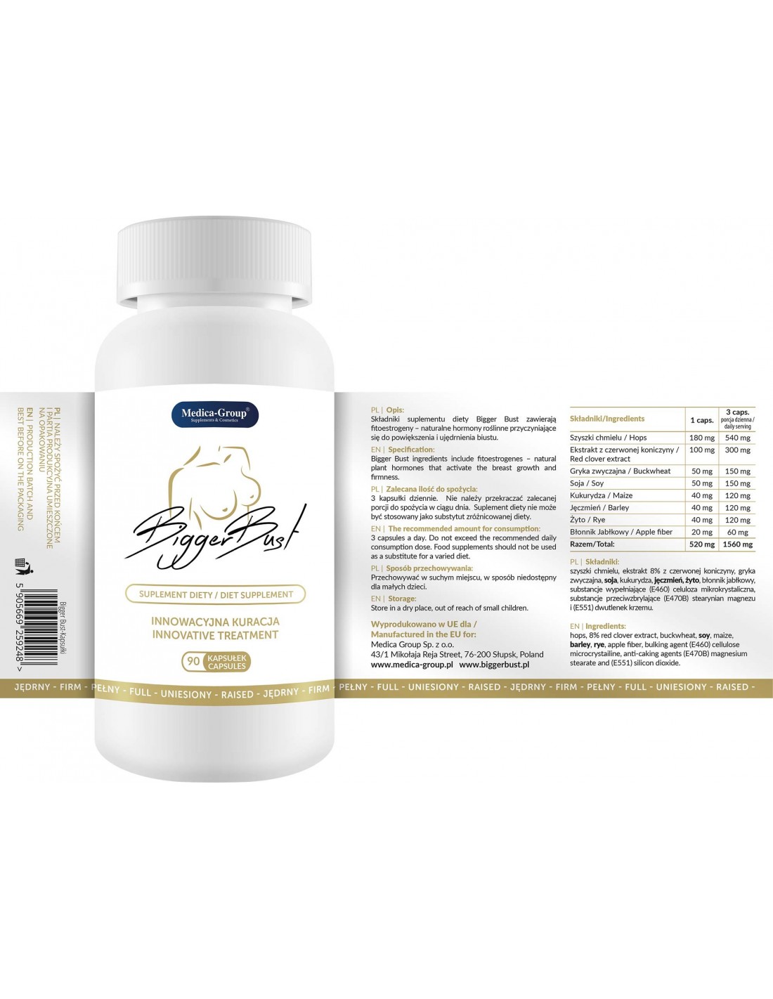 Twoje marzenie o pięknie wymodelowanych, dużych i jędrnych piersiach może się spełnić dzięki BigerBust 90 kaps. od Medica. Niezależnie od tego, czy Twoje piersi są za małe, obwisłe czy nierówne, ten produkt pomoże Ci zyskać pewność siebie i poczuć się atrakcyjnie.