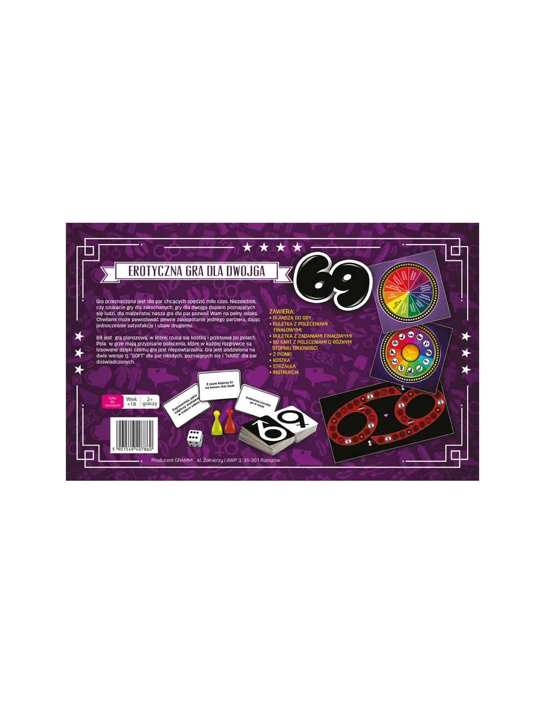 69 Gra Erotyczna to nie tylko zwykła gra. To prawdziwe wyzwanie, które pozwoli Ci na odkrycie nowych aspektów Twojego życia seksualnego. Zestaw zawiera planszę do gry, ruletkę z pytaniami finałowymi, ruletkę z zadaniami finałowymi, 80 kart z poleceniami o różnym stopniu trudności, 2 pionki, kostkę, strzałkę oraz instrukcję. Każdy element został starannie zaprojektowany, aby zapewnić Ci maksymalną przyjemność i satysfakcję.