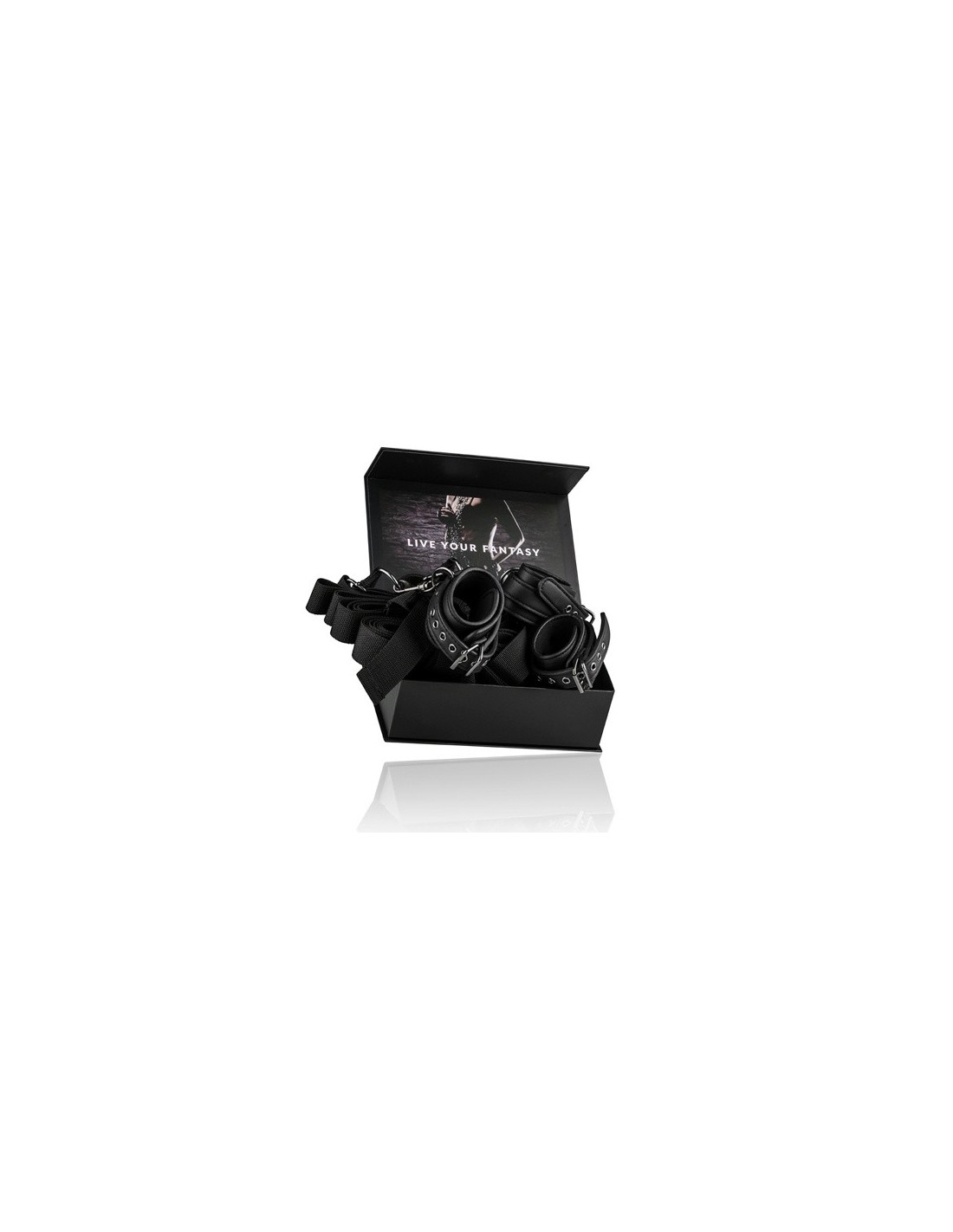 Dzięki regulowanym paskom, ten system pasuje do każdego materaca, gwarantując niezawodne i wygodne mocowanie. Włóż paski pod materac, a kajdanki będą zwisać po bokach, gotowe do użycia. Pozwól swojemu partnerowi położyć się na łóżku, a następnie zwiąż jego ręce i kostki mankietami. Ucieczka jest niemożliwa! Wszystkie cztery mankiety są regulowane, aby idealnie dopasować się do ciała Twojego partnera. Wykonane z wytrzymałej i trwałej eko skóry, są one również wyłożone pianką, zapewniającą maksymalny komfort podczas użytkowania.