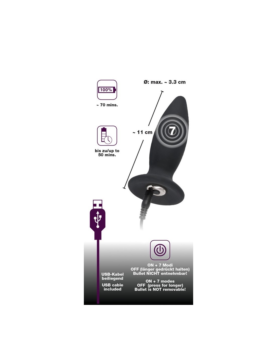 Niezależnie od tego, czy jesteś początkującym czy doświadczonym miłośnikiem analnej rozkoszy, ten plug spełni Twoje najskrytsze pragnienia. Jego 7 trybów wibracji pozwoli Ci na odkrycie nowych poziomów przyjemności, a aksamitnie miękka powierzchnia jeszcze bardziej wzmocni Twoje doznania. Pamiętaj jednak, aby używać tylko smarów na bazie wody, ponieważ te na bazie silikonu mogą uszkodzić materiał.