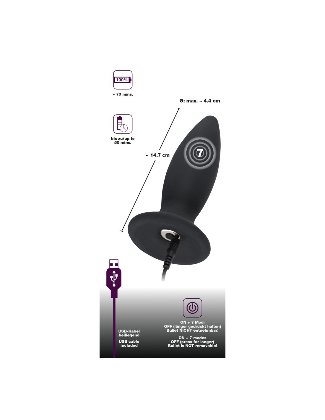 Ten wibrujący korek analny to nie tylko miękkość i komfort, ale również intensywność przyjemności. Dzięki 7 trybom wibracji, możesz dostosować doznania do swoich preferencji, odkrywając nowe poziomy rozkoszy. Jego aksamitnie miękka powierzchnia dodatkowo wzmacnia doznania, sprawiając, że każdy ruch staje się niezapomniany. Pamiętaj, aby używać tego korka tylko z lubrykantem na bazie wody, aby utrzymać jego jakość i trwałość.