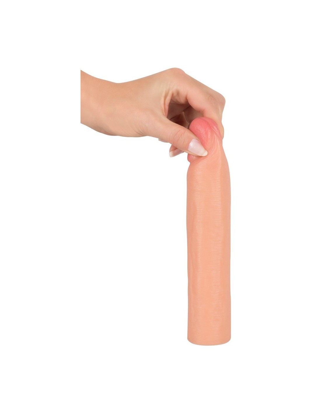 Ta nakładka wykonana z miękkiego i elastycznego materiału pozwoli Ci wydłużyć swój penis o imponujące 10 cm. Jej wyraźnie zaznaczone żołędzie i żyły sprawią, że Twoja partnerka poczuje się jak nigdy dotąd. Wnętrze nakładki jest jedwabiście gładkie, co zapewni niezwykłe doznania podczas penetracji.