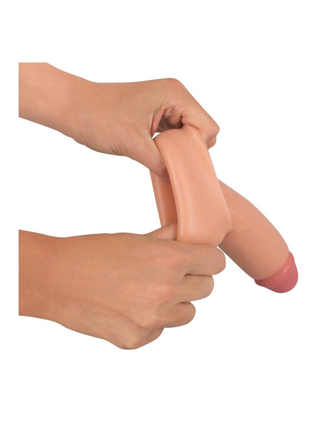 Dodatkowo rękaw jest przyjemnie elastyczny, dzięki czemu idealnie dopasuje się do Twojego penisa. Jeśli potrzebujesz, możesz go również indywidualnie skrócić, aby jeszcze lepiej pasował do Twoich preferencji. Ta nakładka na penisa zapewnia nie tylko wzrost długości, ale także intensyfikuje stymulację i sprawia, że seks staje się jeszcze bardziej ekscytujący.