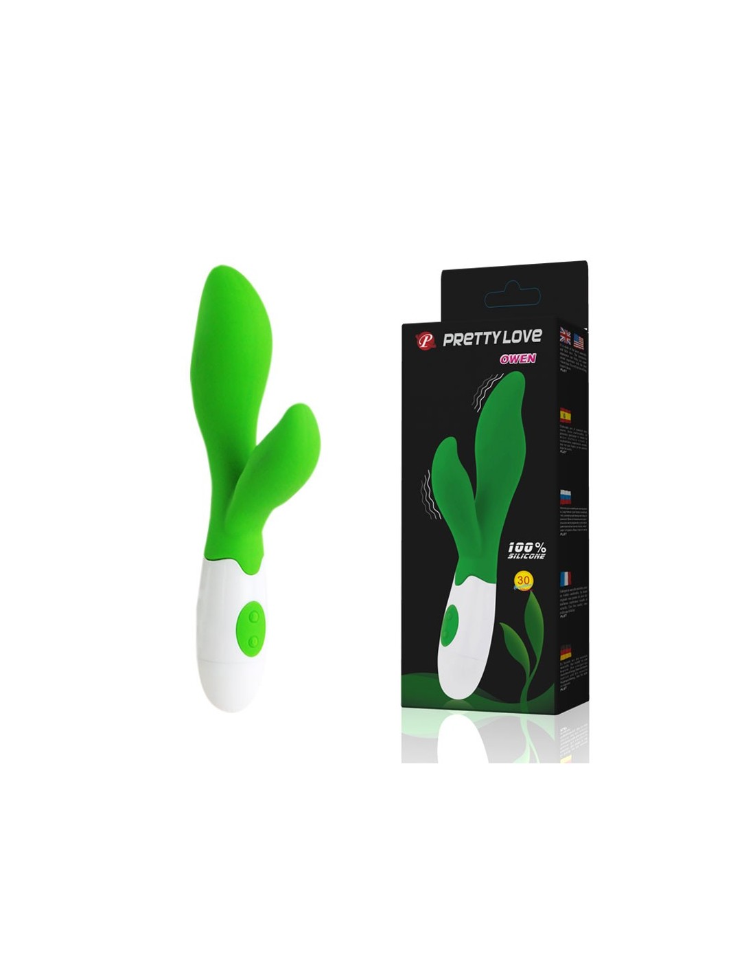Ekskluzywny wibrator króliczek OWEN w modnym odcieniu zieleni. Specjalnie wyprofilowany tak by jednocześnie masować i stymulować punkt G oraz łechtaczkę kobiety. Niezapomniane przeżycia i fantastyczna przyjemność gwarantowane.