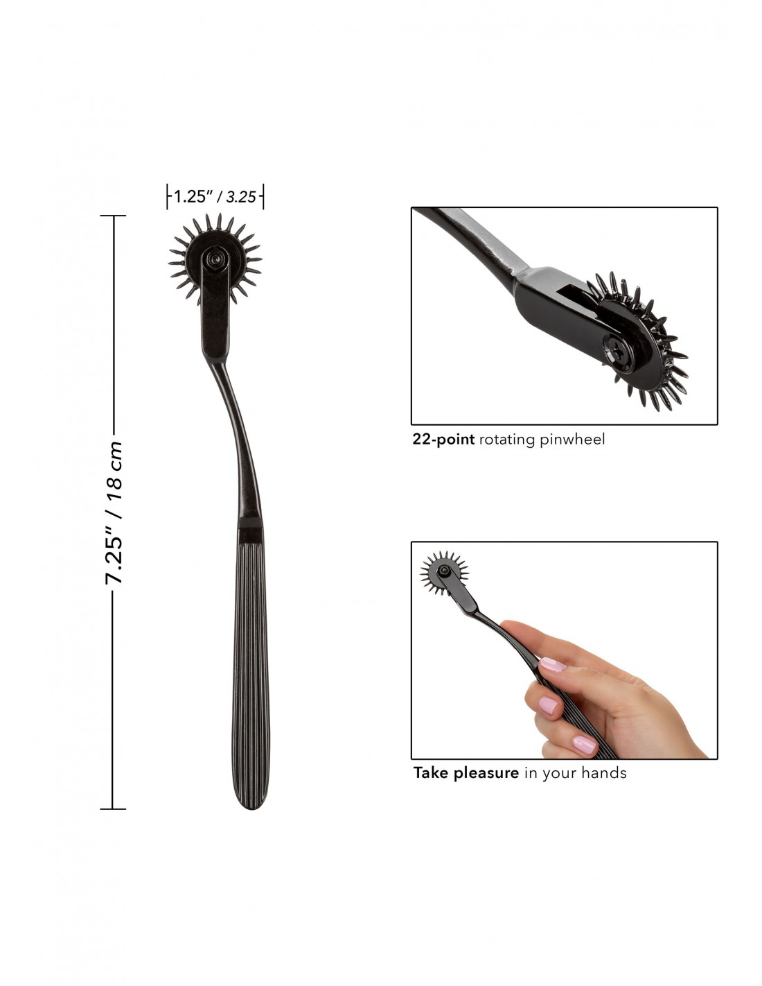 Zostań mistrzem swojej intymności dzięki tym stymulującym wrażeniom. Stymulator BDSM Scandal Pleasure Wheel został wykonany z wytrzymałego, nie matowiejącego stopu cynku bez niklu, dzięki czemu możesz cieszyć się nim przez wiele długich i gorących sesji. Jego długość całkowita wynosi 18,5 cm, a średnica 3,25 cm, co sprawia, że jest idealnie dopasowany do Twoich potrzeb.