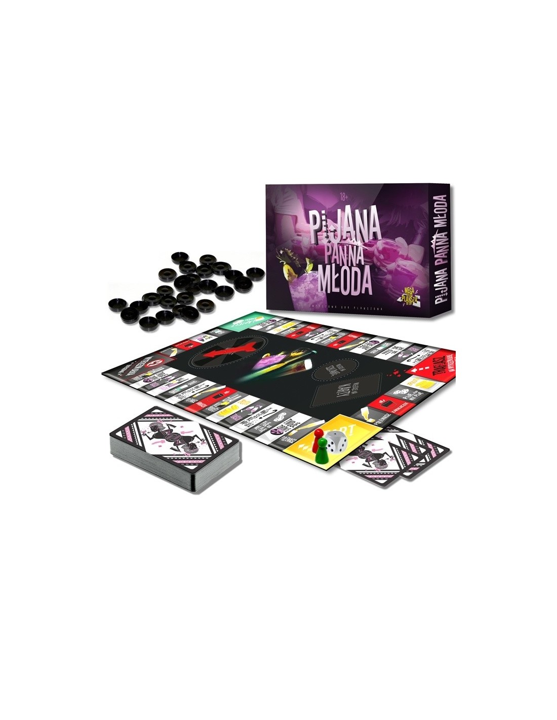 Pijana Panna Młoda to gra, która łączy w sobie wszystkie gry imprezowe w jedną. Na ogromnej planszy czekają na Ciebie 60 kart z różnymi poleceniami, które zagwarantują Ci niezapomniane wrażenia. Dodatkowo, w zestawie znajdziesz 36 monet, ruletkę oraz pionki i kostkę. To wszystko, czego potrzebujesz, aby rozpocząć prawdziwą imprezę!