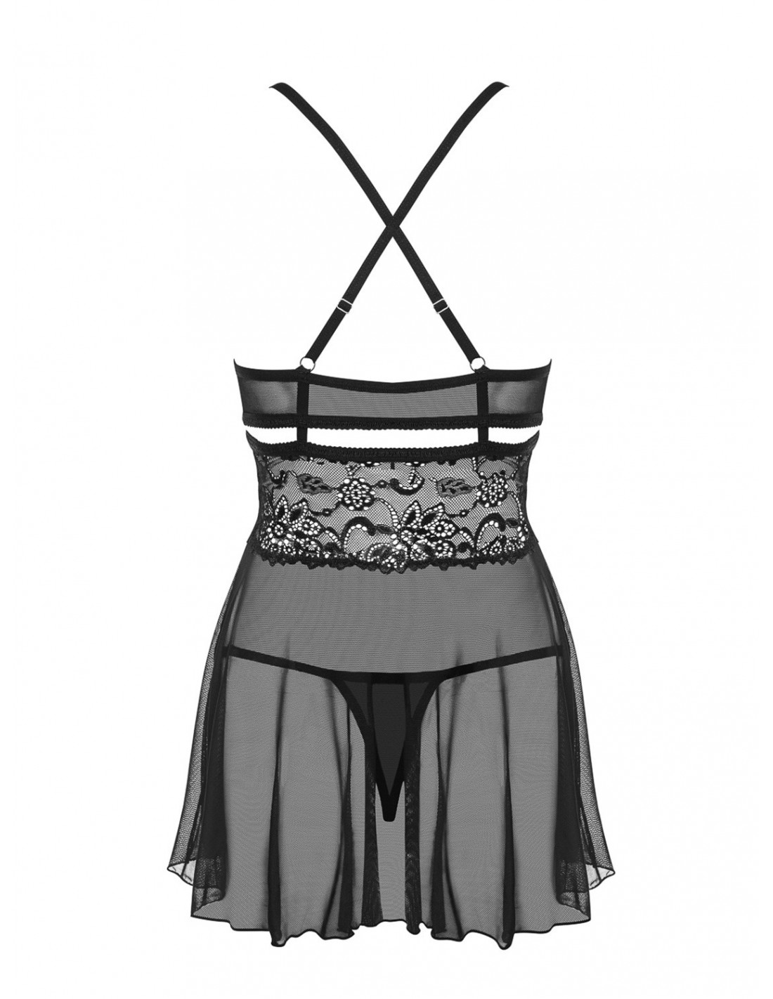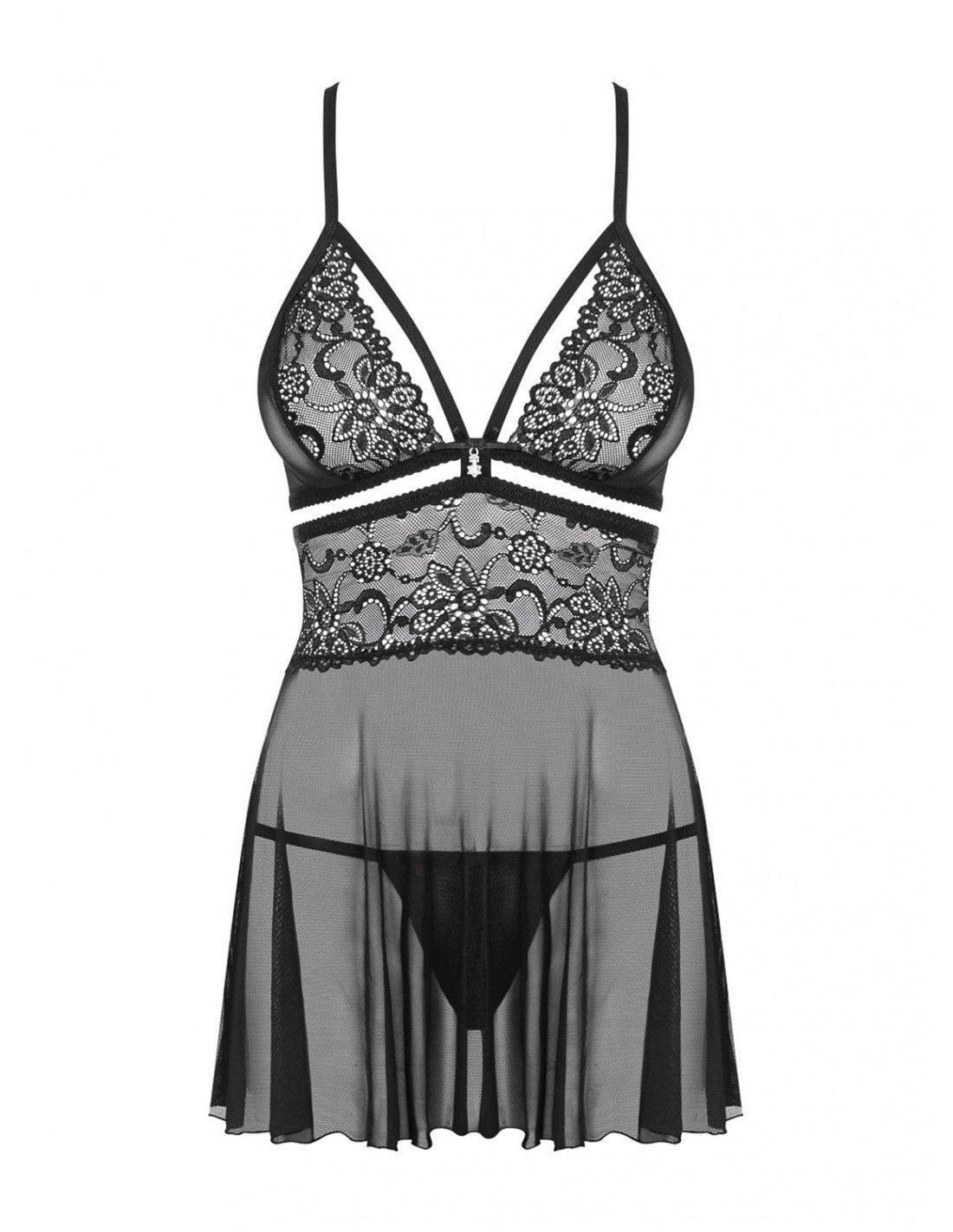 Zapraszamy Cię do odkrycia niesamowitego doznania, jakim jest nasza czarna babydoll. To połączenie koronki i zwiewnej siateczki sprawia, że wyglądasz niezwykle seksownie i kobieco. Już na pierwszy rzut oka wiesz, że to coś specjalnego.