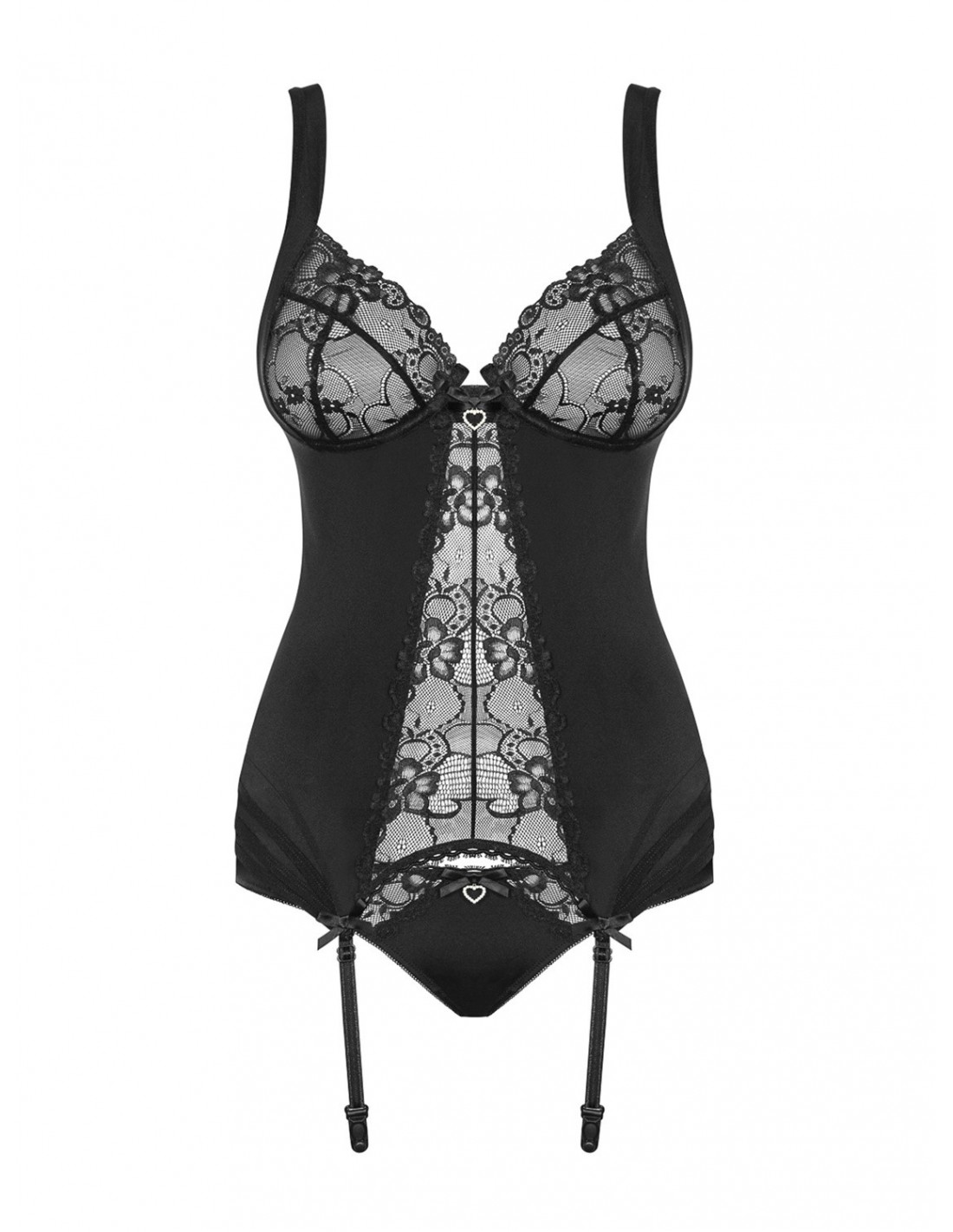 Poznaj niezwykły zestaw bielizny erotycznej, który sprawi, że poczujesz się wyjątkowo seksowna i pewna siebie. Gorset Heartina to połączenie prześwitującej koronki z nieprzeźroczystym materiałem, które zapewni Ci niezapomniane doznania.