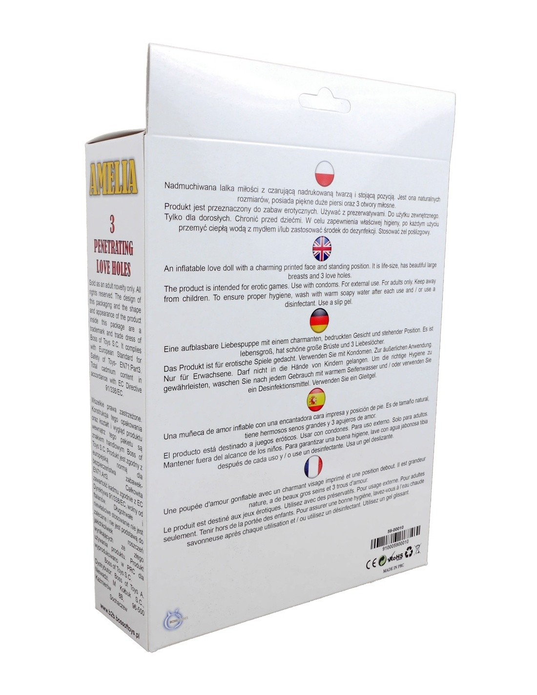 Amelia to lalka o naturalnych rozmiarach, której czarująca nadrukowana twarz i stojąca pozycja od razu przyciągają uwagę. Jej brązowy kolor dodaje jej uroku i elegancji. Ale to nie wszystko - Amelia posiada duże, piękne piersi oraz trzy kuszące dziurki miłosne, które zapewnią Ci niezwykłe doznania i spełnią Twoje najskrytsze pragnienia.