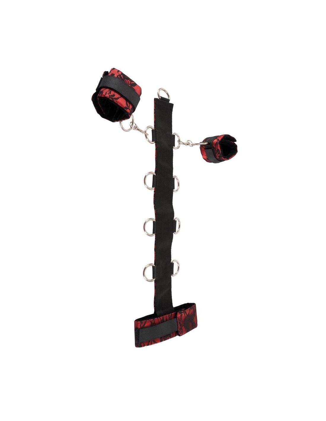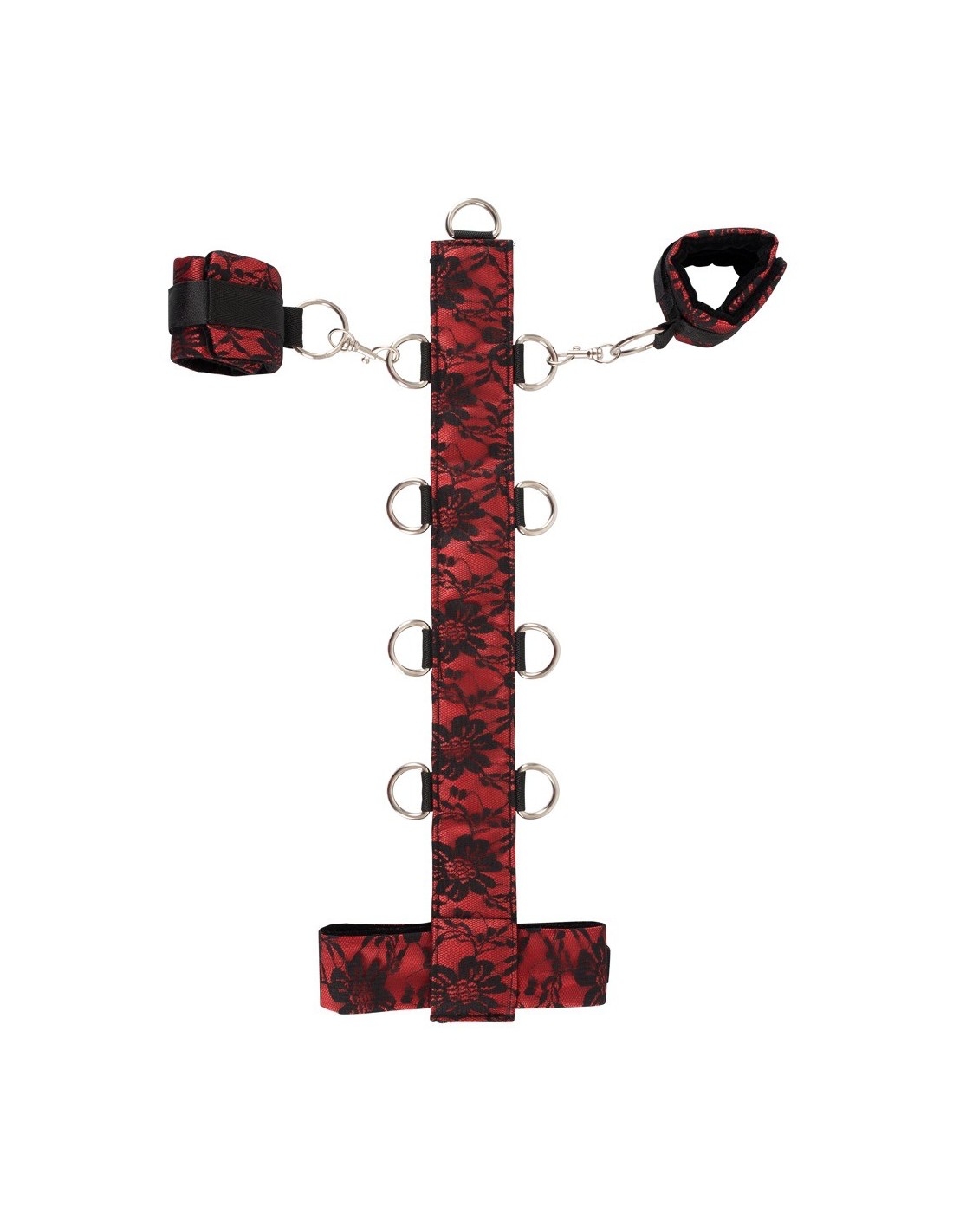 W komplecie z uprzężą otrzymasz również obrączkowany pasek i kajdanki z karabińczykami, które dodają całości jeszcze więcej możliwości i emocji. Ciesz się niezwykłą przyjemnością związanych rąk i eksploruj nowe obszary podniecenia.